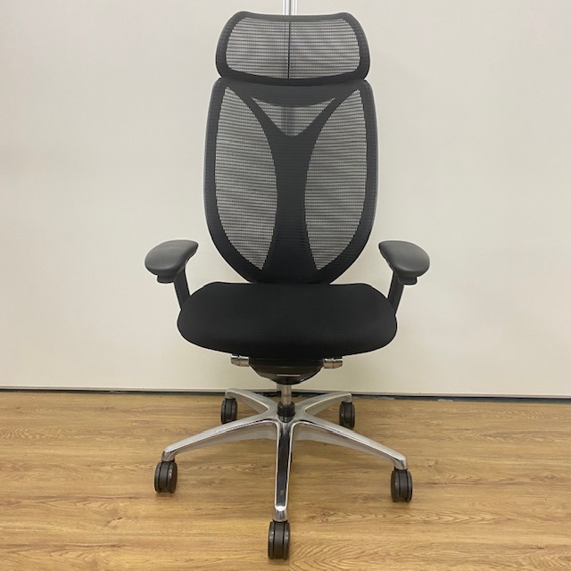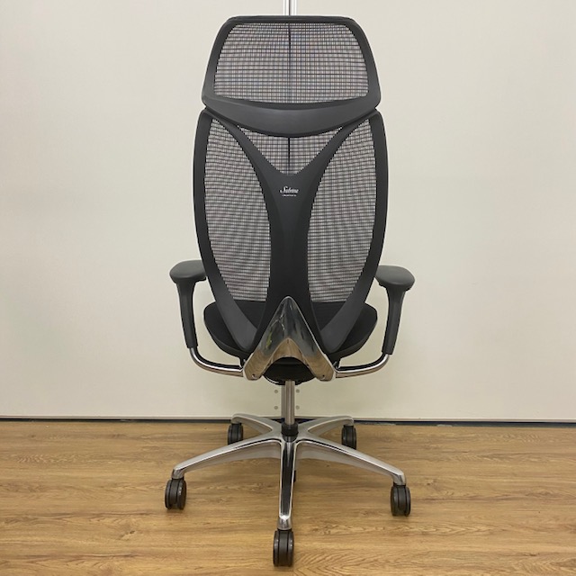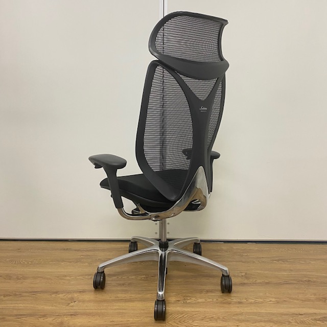 【前傾チルト付・流れるような美しいフォルムの最高級メッシュチェア!】■オカムラ(okamura)製 サブリナ(Sabrina) 肘付き エクストラハイバックチェア 背面メッシュ ■可動肘・ヘッドレスト・ハンガー付き ■ブラック【オフィスにもご自宅用にも人気の一品!】