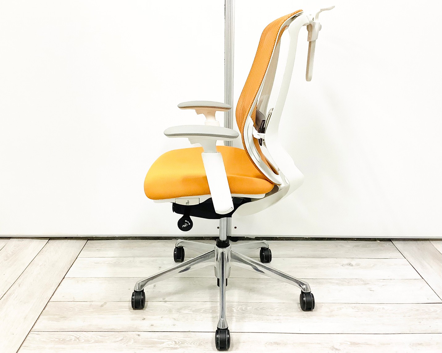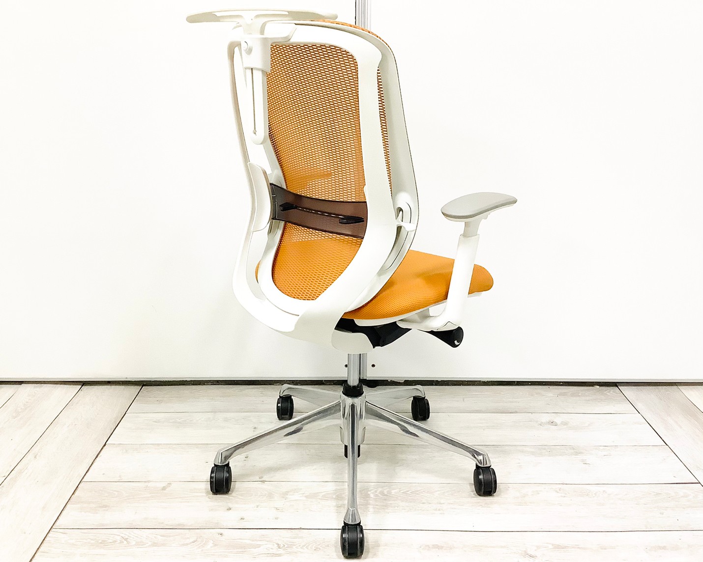 【状態要考慮座面ホツレあり】【通常使用問題ありません!】オレンジカラーオフィス&ご自宅おススメシルフィ―(Sylphy)チェア※ポリッシュフレーム&可動肘掛け&新品ヘッドレスト付◆オカムラ製【2509】弊社使用欄【A01036295 A01031968】
