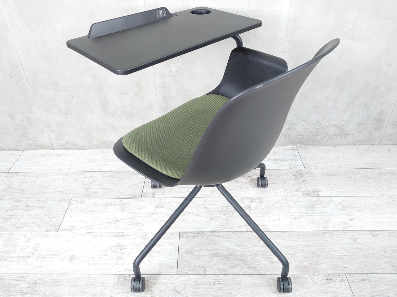 【関東倉庫在庫品】コクヨ製・『オールインワン』入荷!!グッドデザイン賞・デザインアワード2020受賞!長時間のミーティングも快適に行える座クッションタイプ!立ち座りもメモ台が動くため動きをサポートしてくれます!ブラックカラー×ダークグリーン配色。弊社使用欄【 A00863293】- 全店共通商品