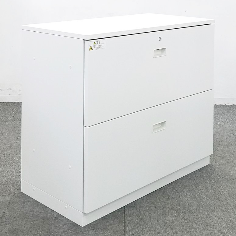 【珍しい2段ラテラルタイプ!】耐久性・機能性を兼ね備えたキャビネット!スペースにジャストフィットする引き出し型収納 ■イトーキ/シンライン/ホワイト シリンダー錠