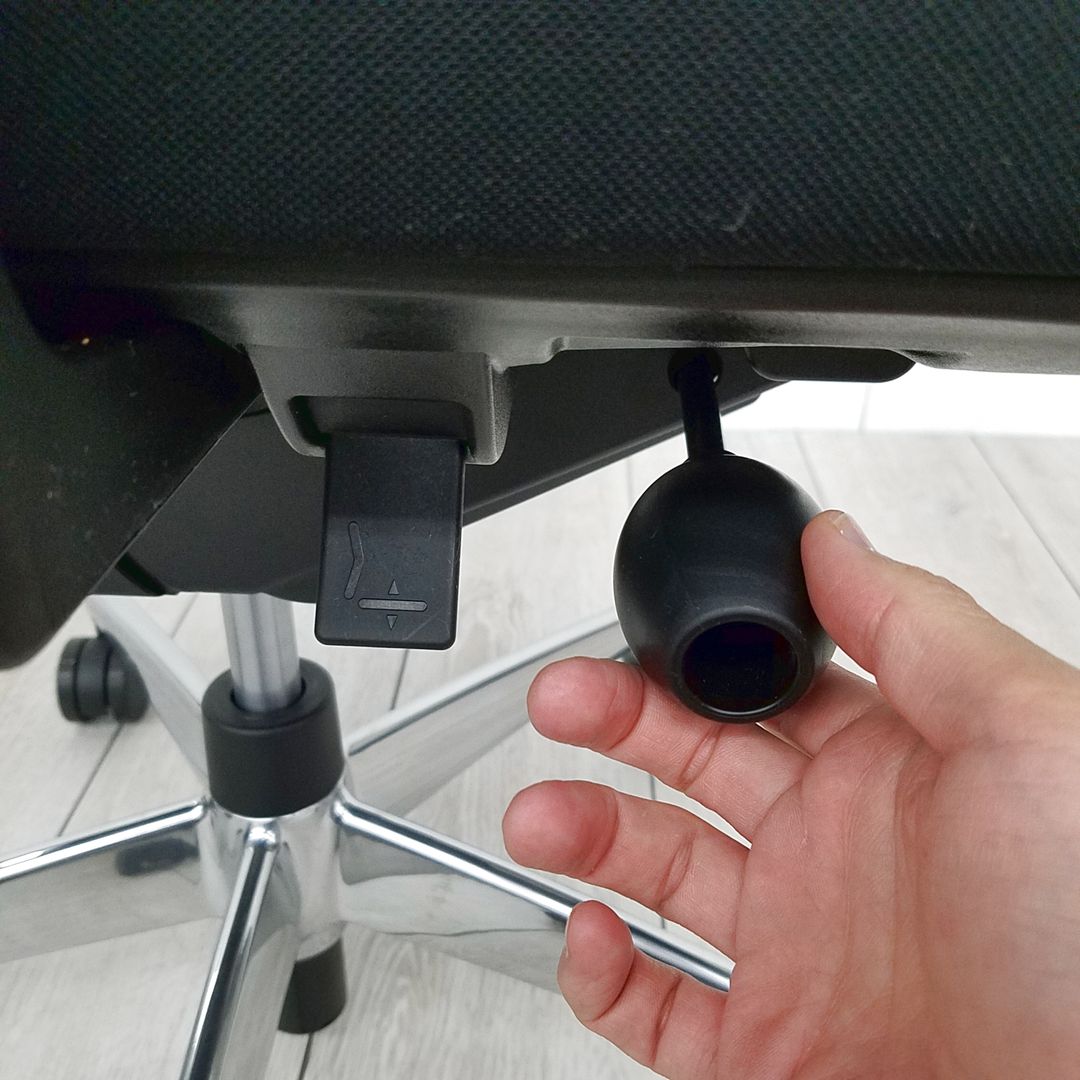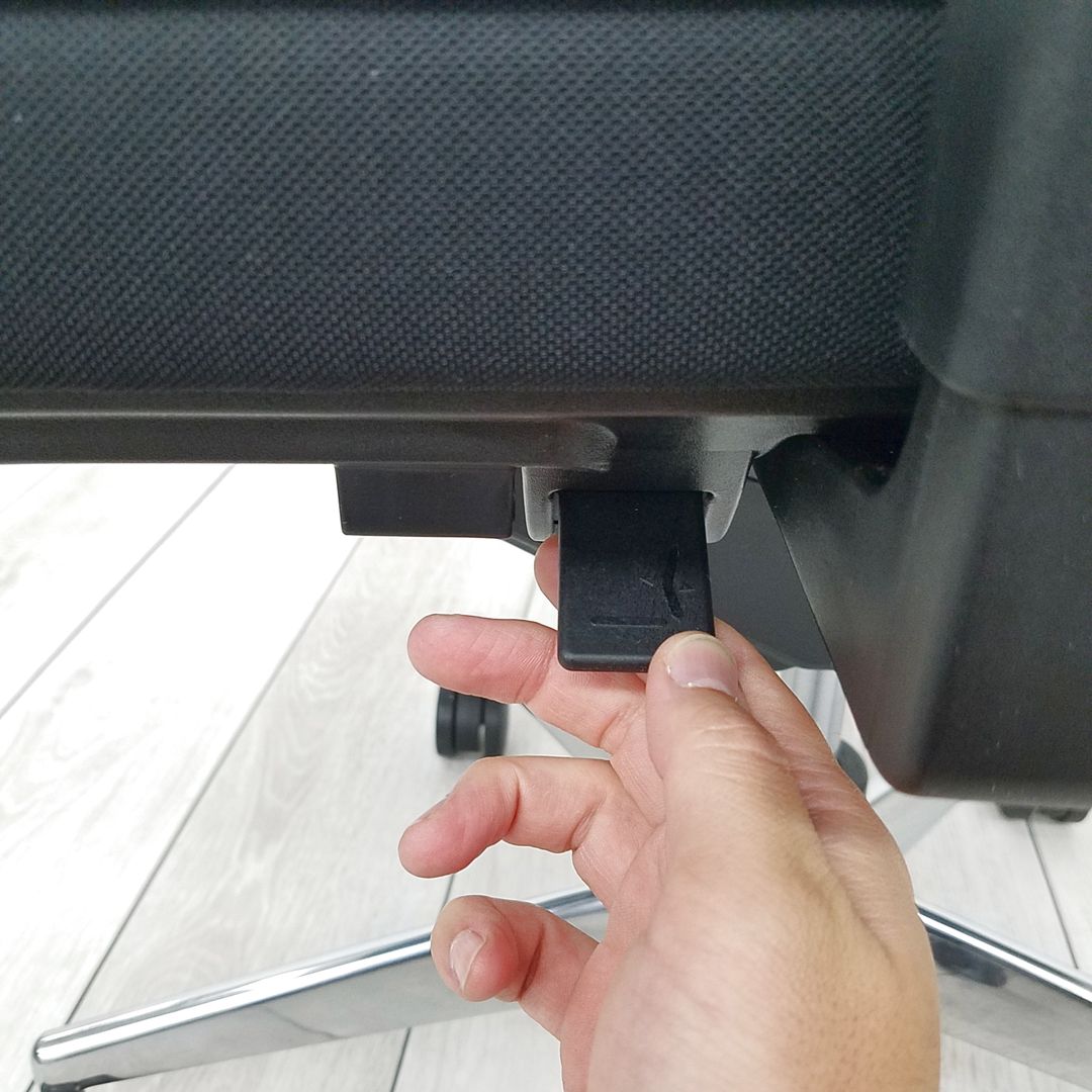 ロッキングは、任意の位置でロックすることが可能で、強さの調節は座面右下のグリップで座った状態で行えます。