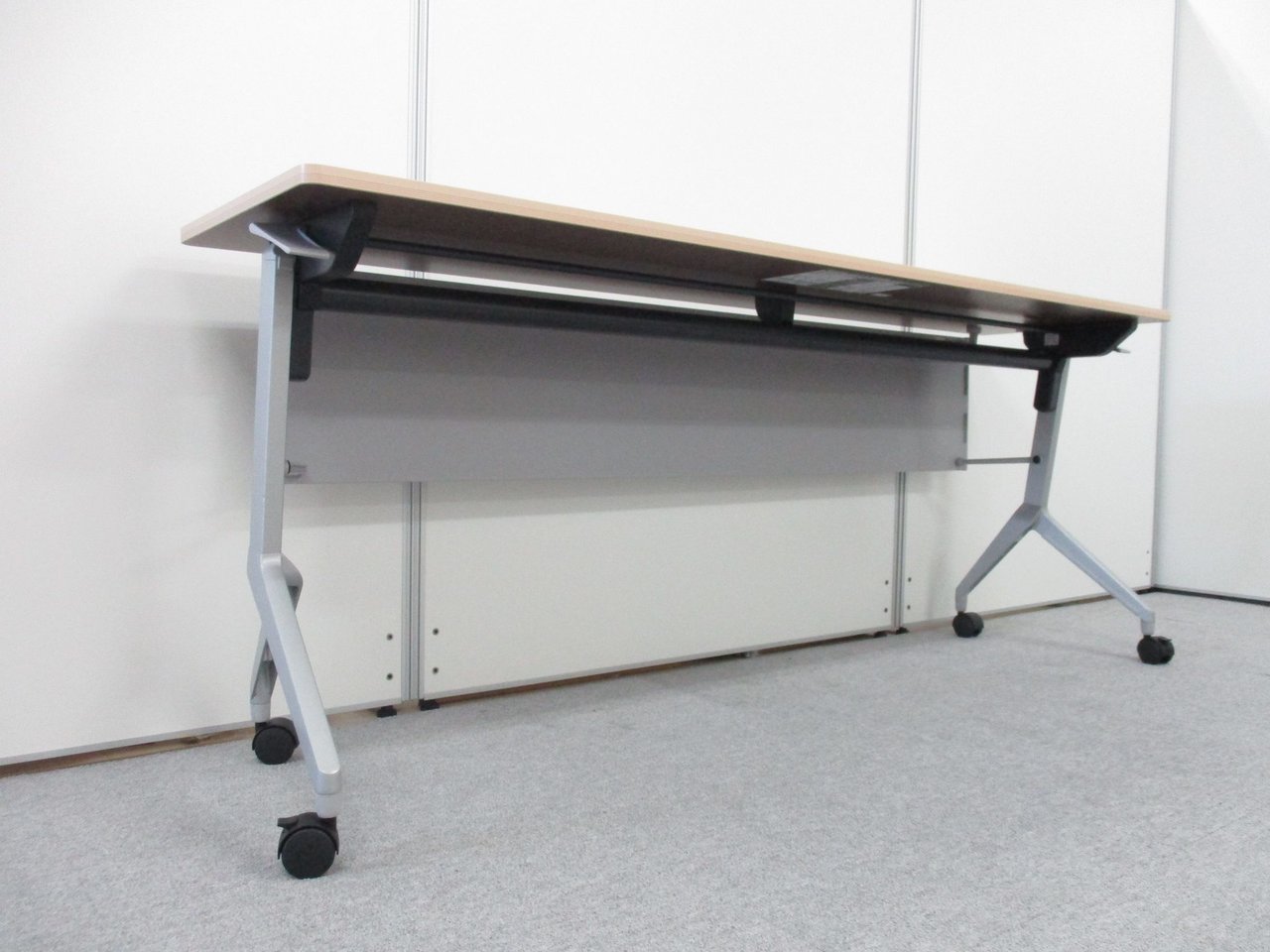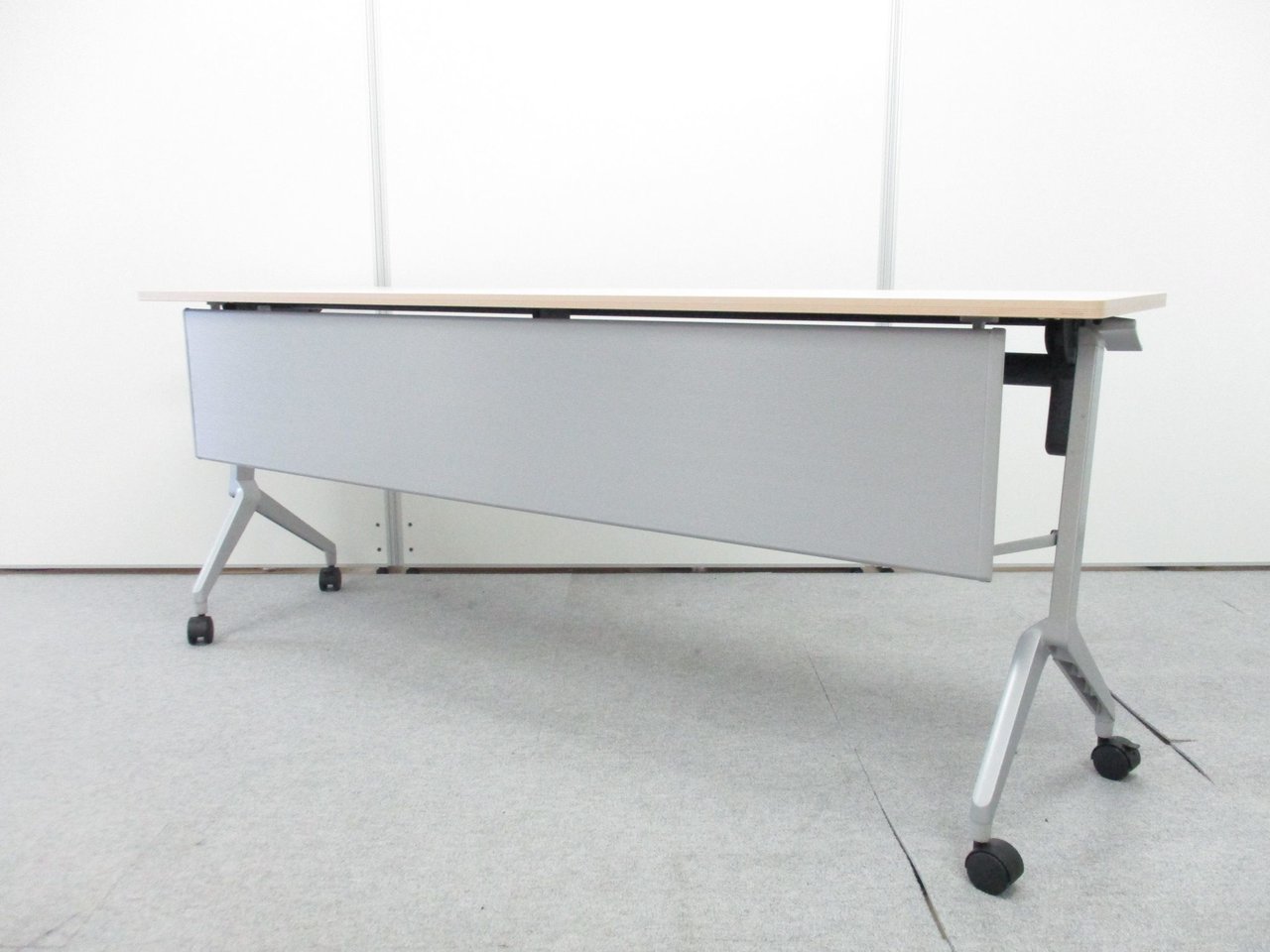 【2024年製!綺麗な状態です!】コクヨ リーフライン サイドスタックテーブル 木目ナチュラル 幕板あり 会議机 収納 折り畳みテーブル セミナー用 福岡 中古家具 安い 九州最大級《オフィスバスターズ福岡博多店は、福岡を拠点として、日本全国へ中古オフィス用品・オフィス家具を提供しております》