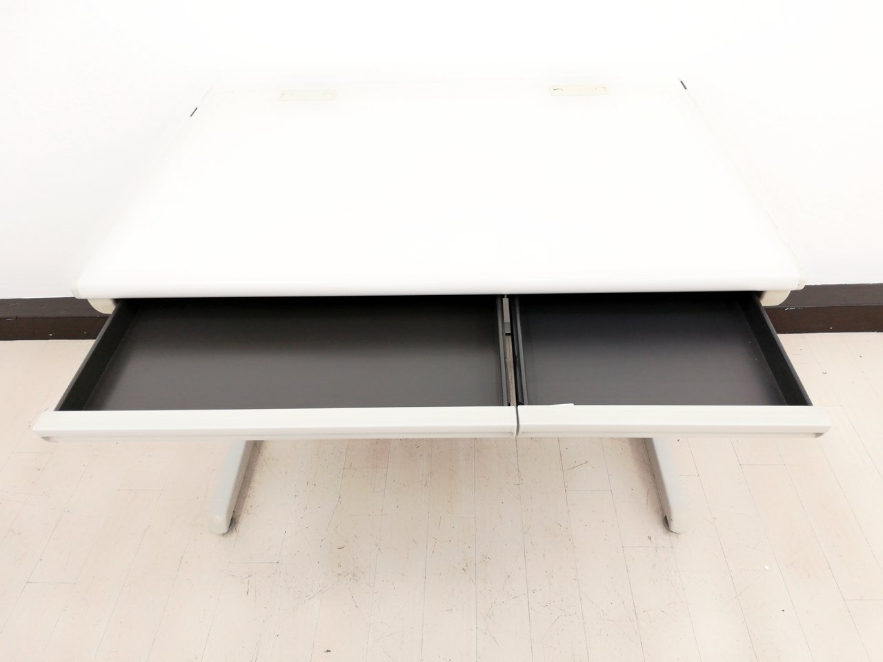 天板下に引き出しがあるタイプですので簡易的な書類や小物の収納が可能です。