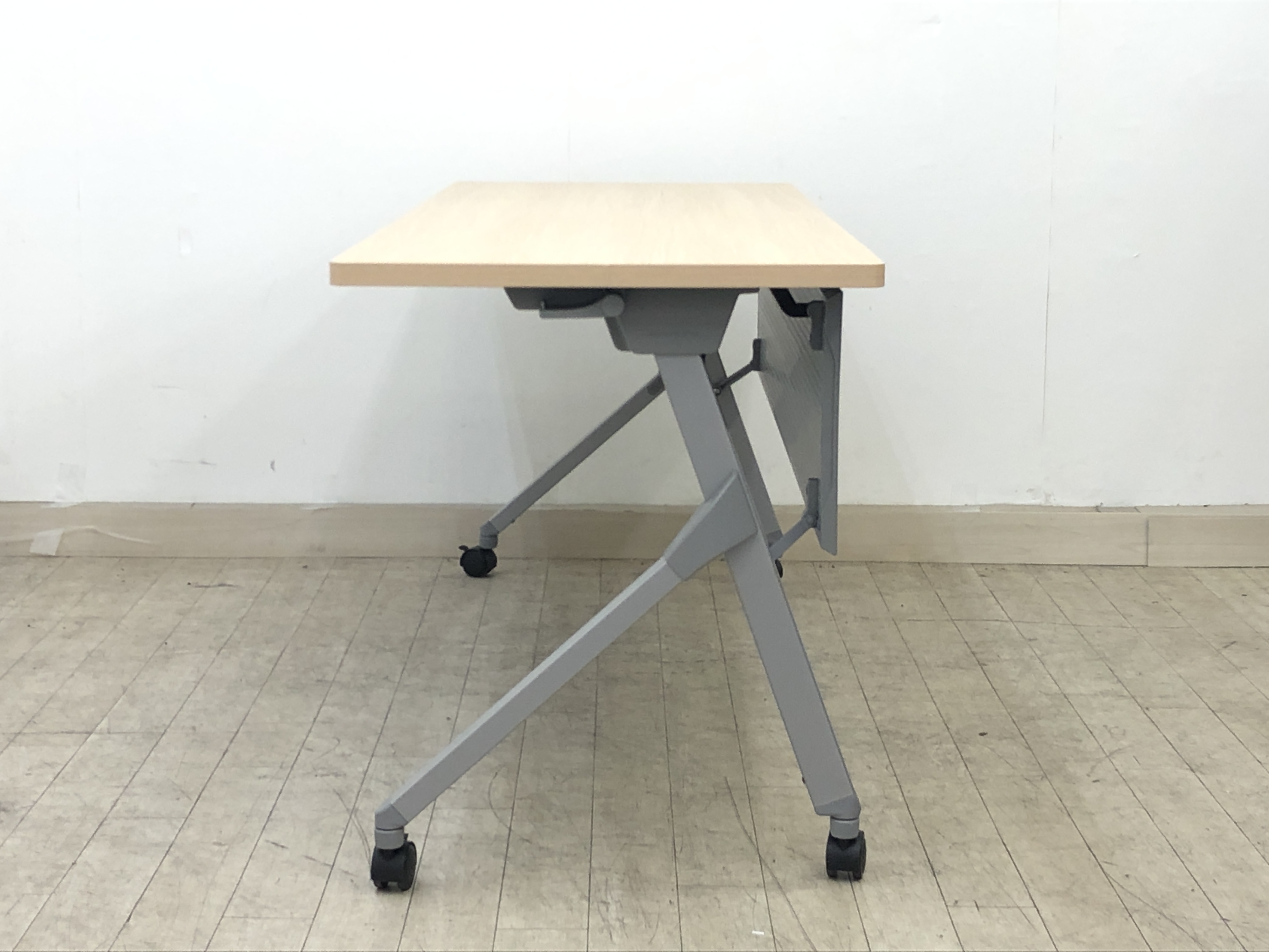 【W1500の折り畳みテーブルが入荷!】◆オカムラ/フラプター ナチュラル 木目 サイドスタックテーブル 収納 中古 博多 天神 九州最大級 オフィスバスターズ