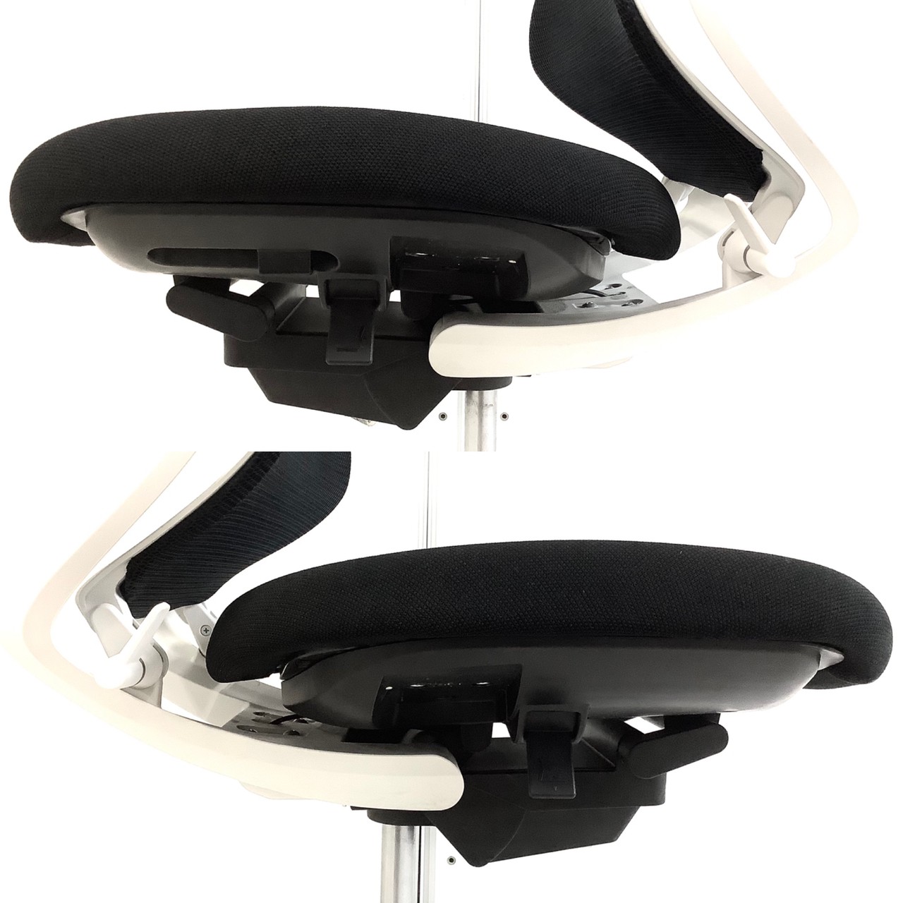 - 座面の高さは上下に90㎜、奥行は前後に50㎜調節可能。さらに骨盤を支えるポスチャーシート採用で着座時の前滑りを防ぎます。