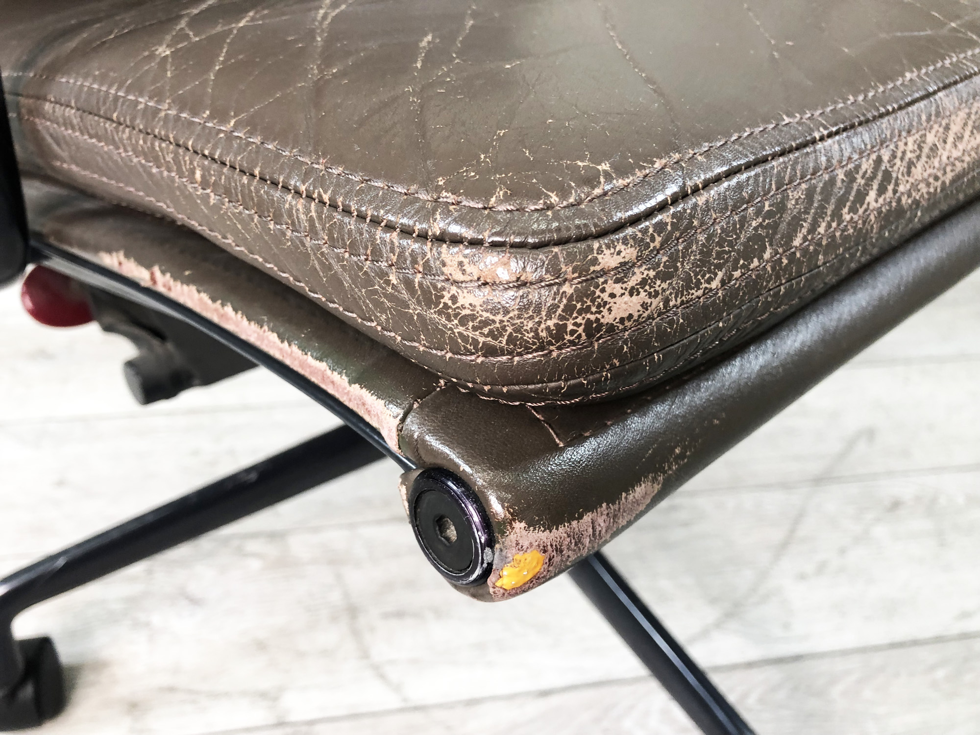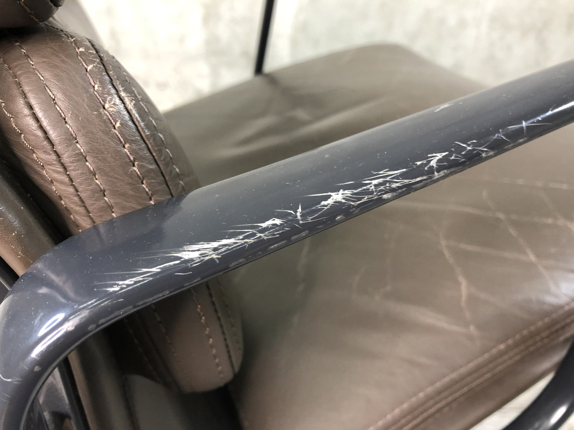 - 目立つ箇所あり傷・破れ・ほつれ・へたり・しわが多数または深い傷・破れ・ほつれ・へたり・しわが一部ある。※座面・背もたれ、シェル、脚部等にある。