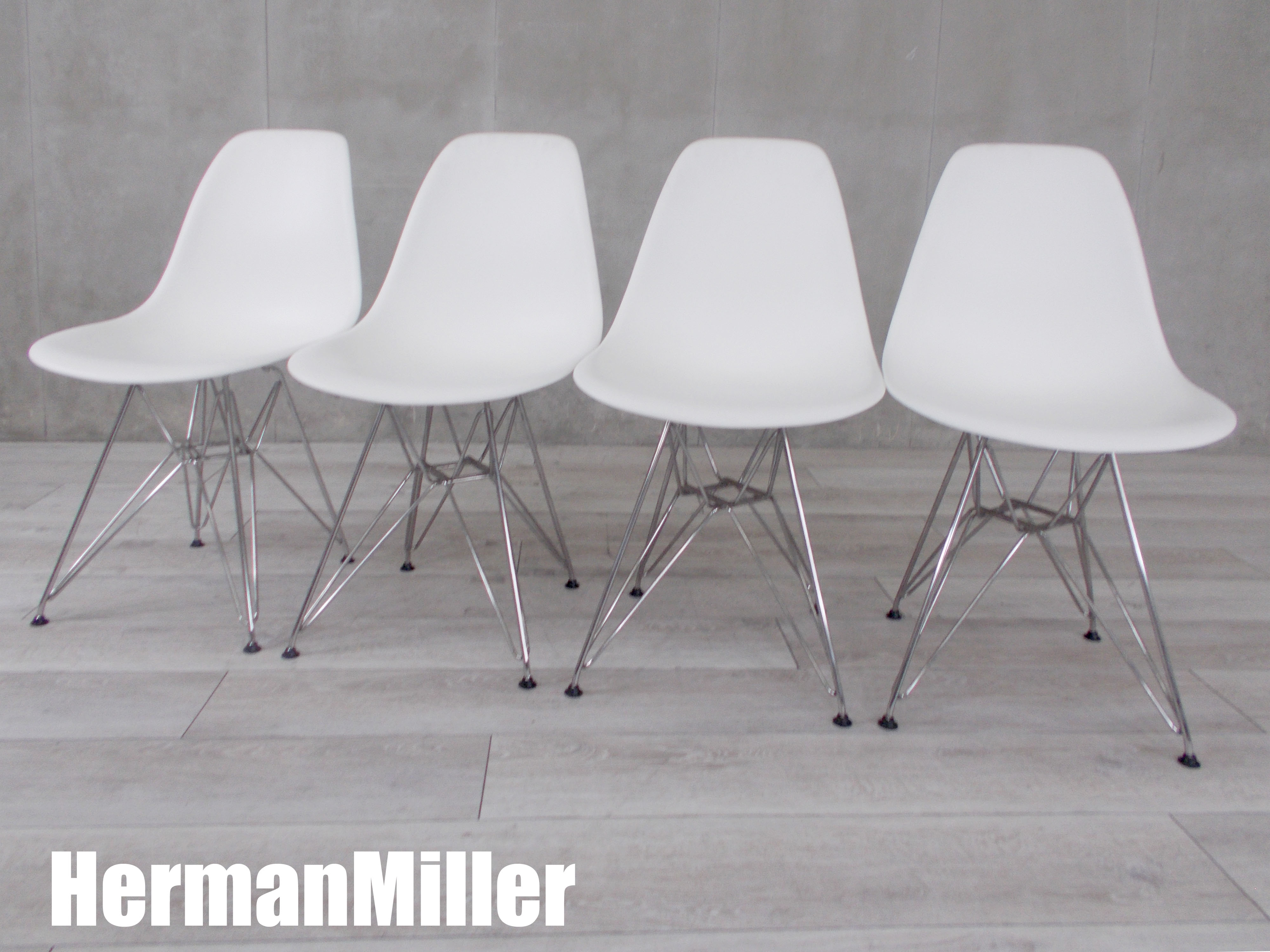 【4脚セット】HermanMiller/ ハーマンミラー イームズ プラスチックサイドシェルチェア エッフェルベース / トリバレントクローム脚 DSR ホワイト ※倉庫在庫品(NC)在庫がある店舗一覧