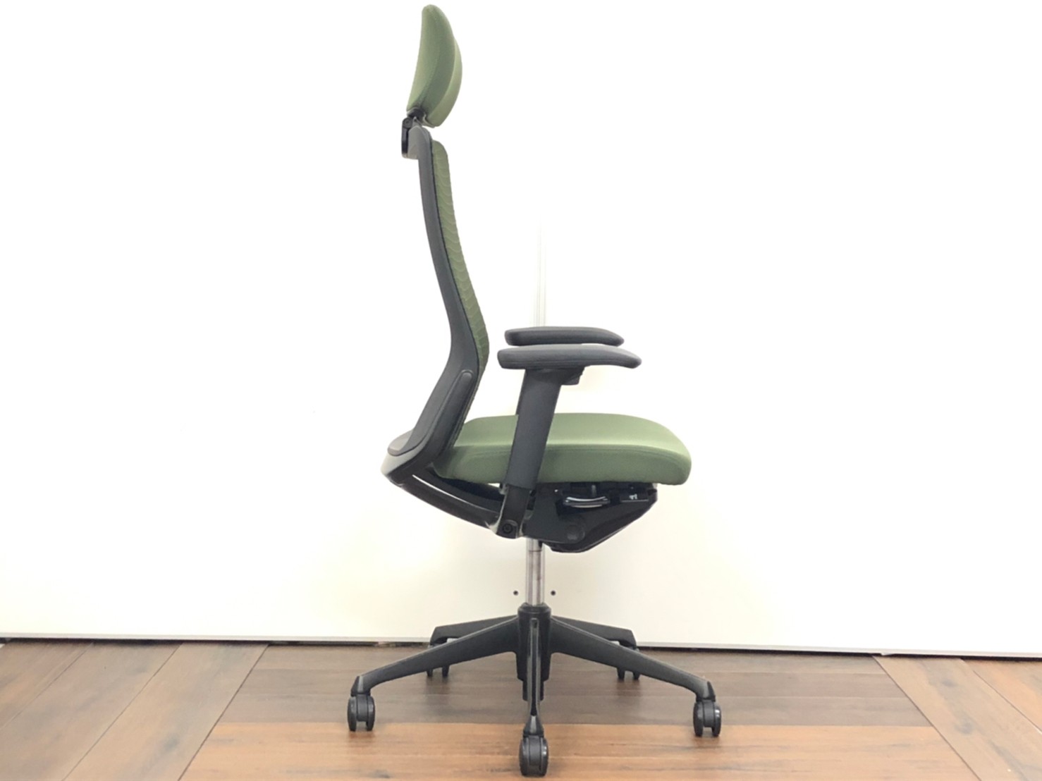 【2018年製の状態良好品!!】オカムラ コーラル ダークグリーン エクストラハイバック アジャストアーム 【ヘッドレスト付きで在宅ワーカーをサポート!!】- 足立・葛飾店