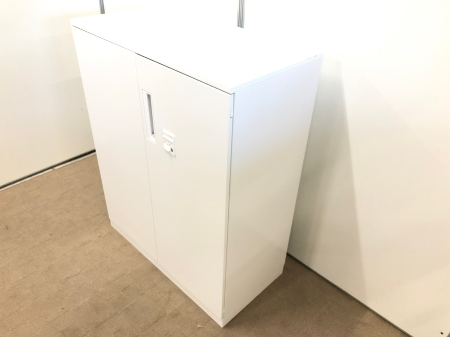 【収納物がひとめで分かる両開き戸タイプ!】■コクヨ(KOKUYO)製 エディア(EDIA)シリーズ 両開き書庫 ローキャビネット H1130㎜ ■天板・ベース付 ■ホワイト ■シリンダー錠