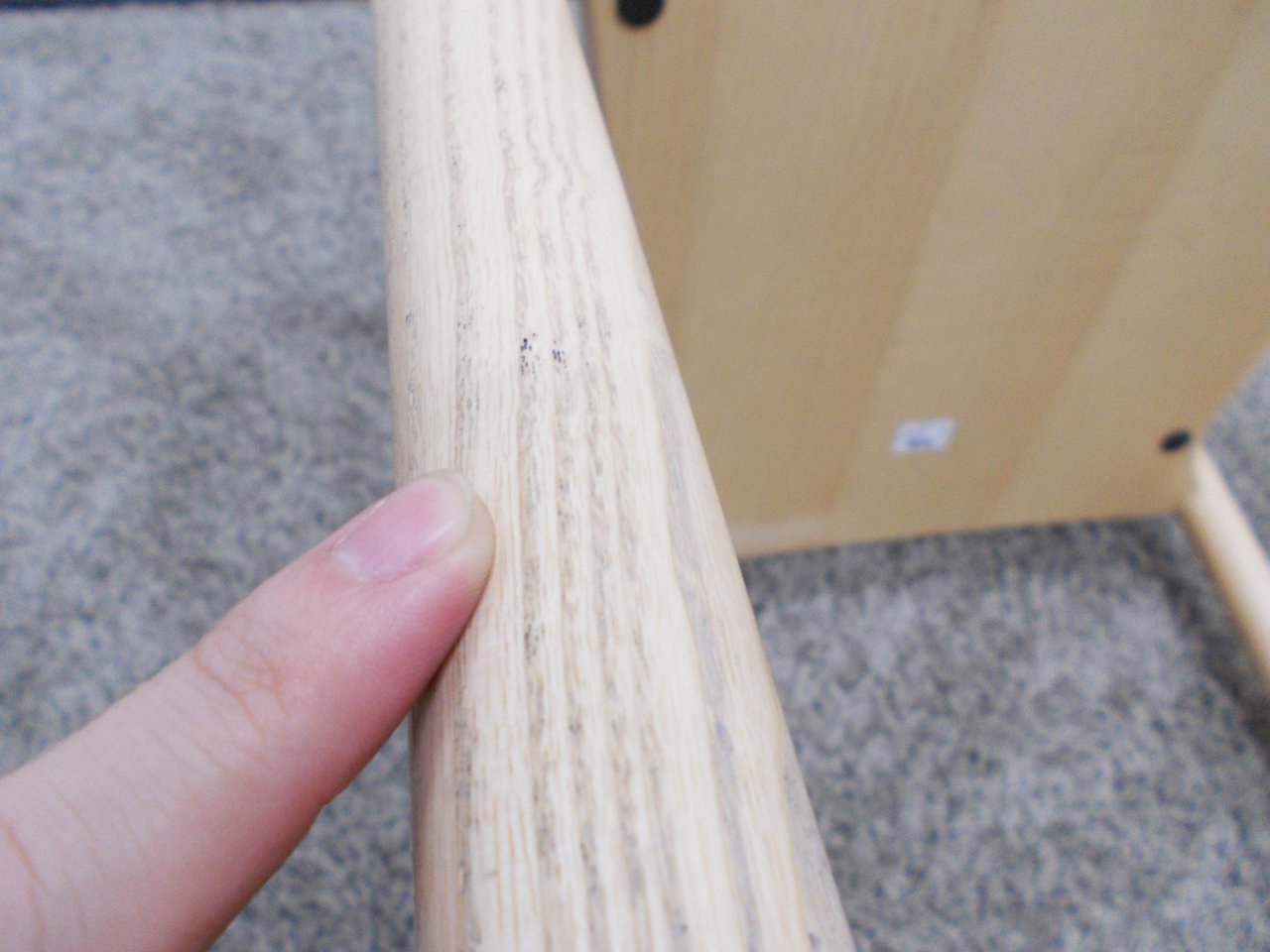 - あり黄ばみ・変色が広い範囲にうっすらある、または濃い黄ばみ・変色が一部ある。(例、座面・背もたれ、脚部等にある。)