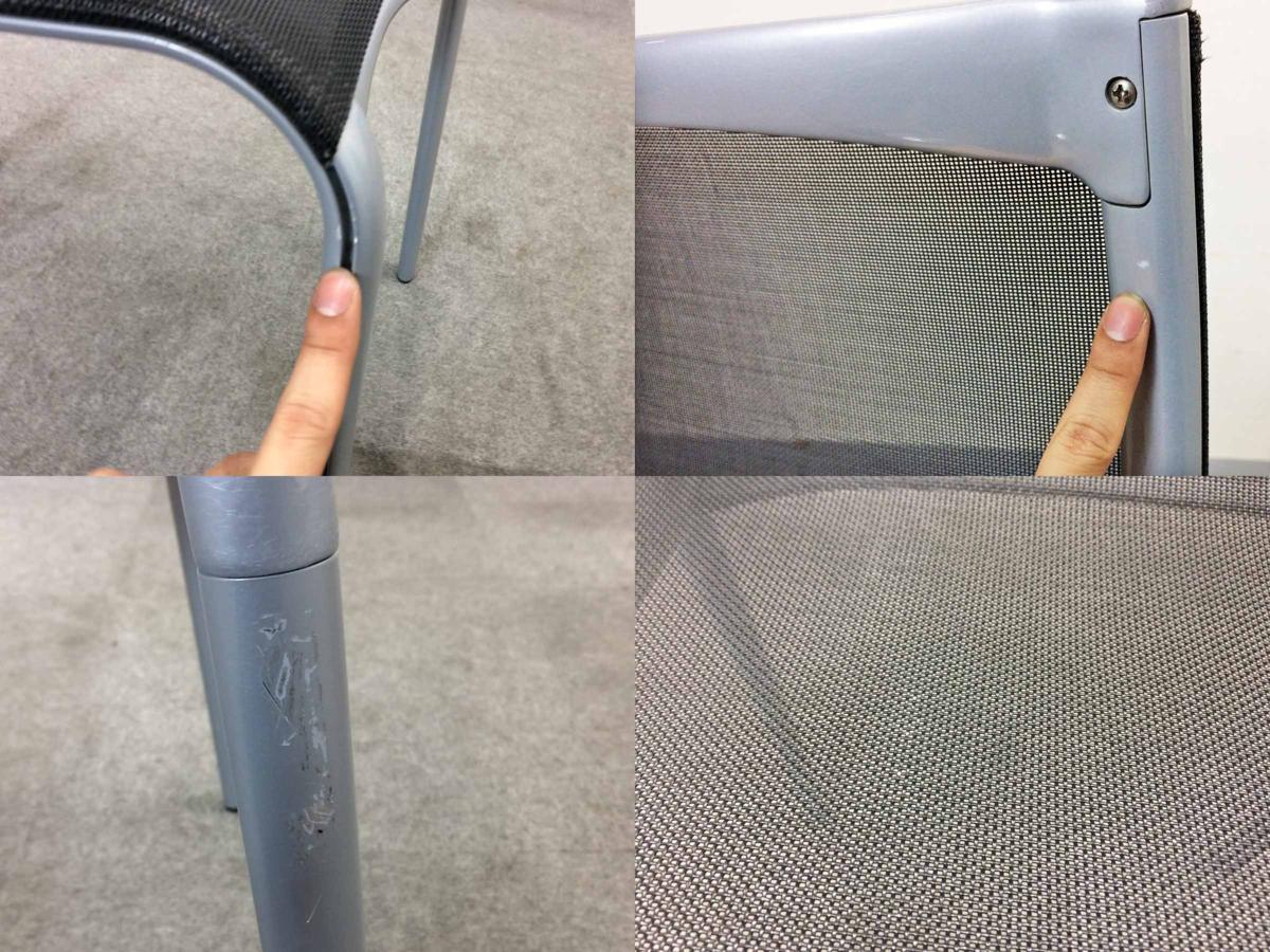 - 目立つ箇所あり傷・破れ・ほつれ・へたり・しわが多数または深い傷・破れ・ほつれ・へたり・しわが一部ある。※座面・背もたれ、シェル、脚部等にある。