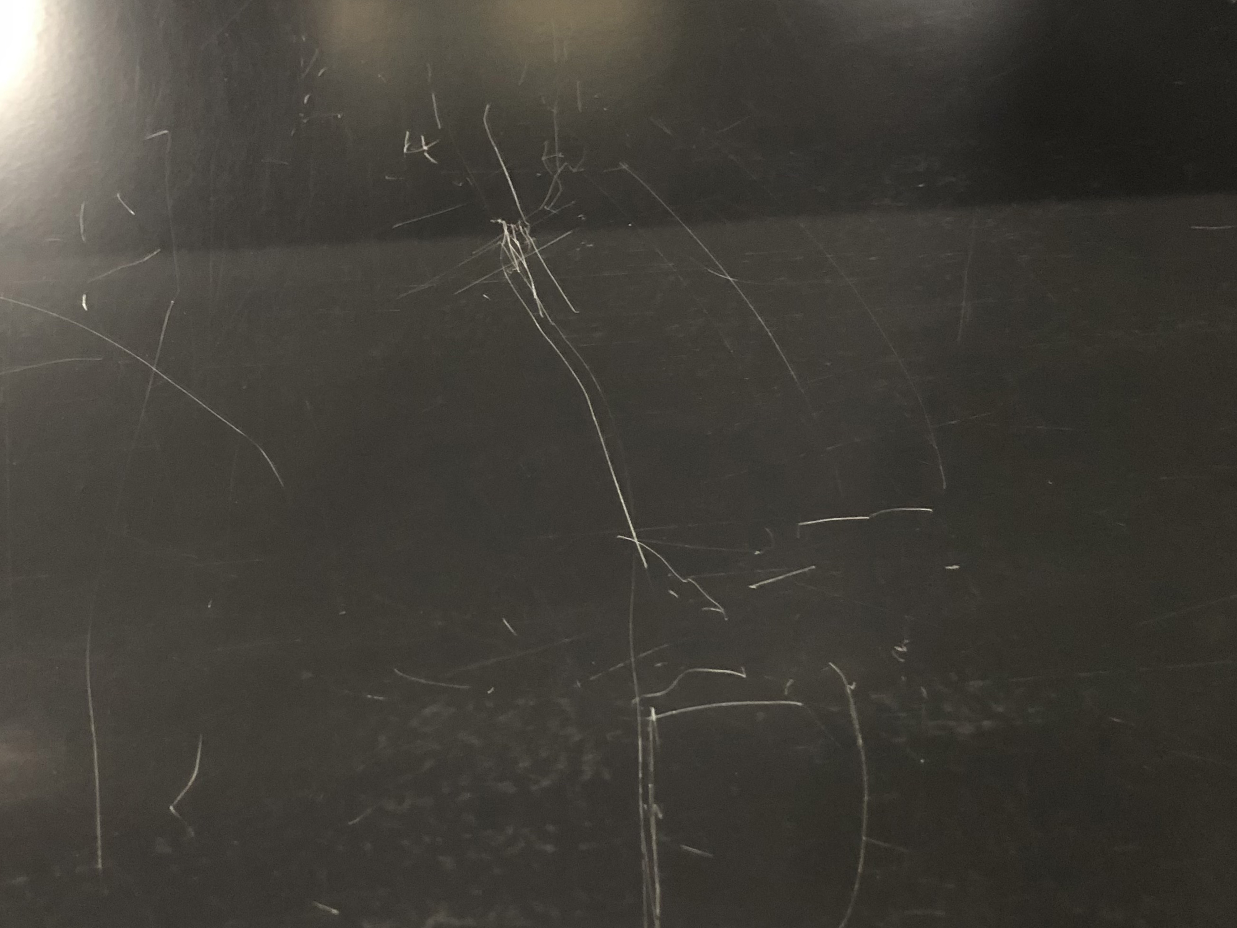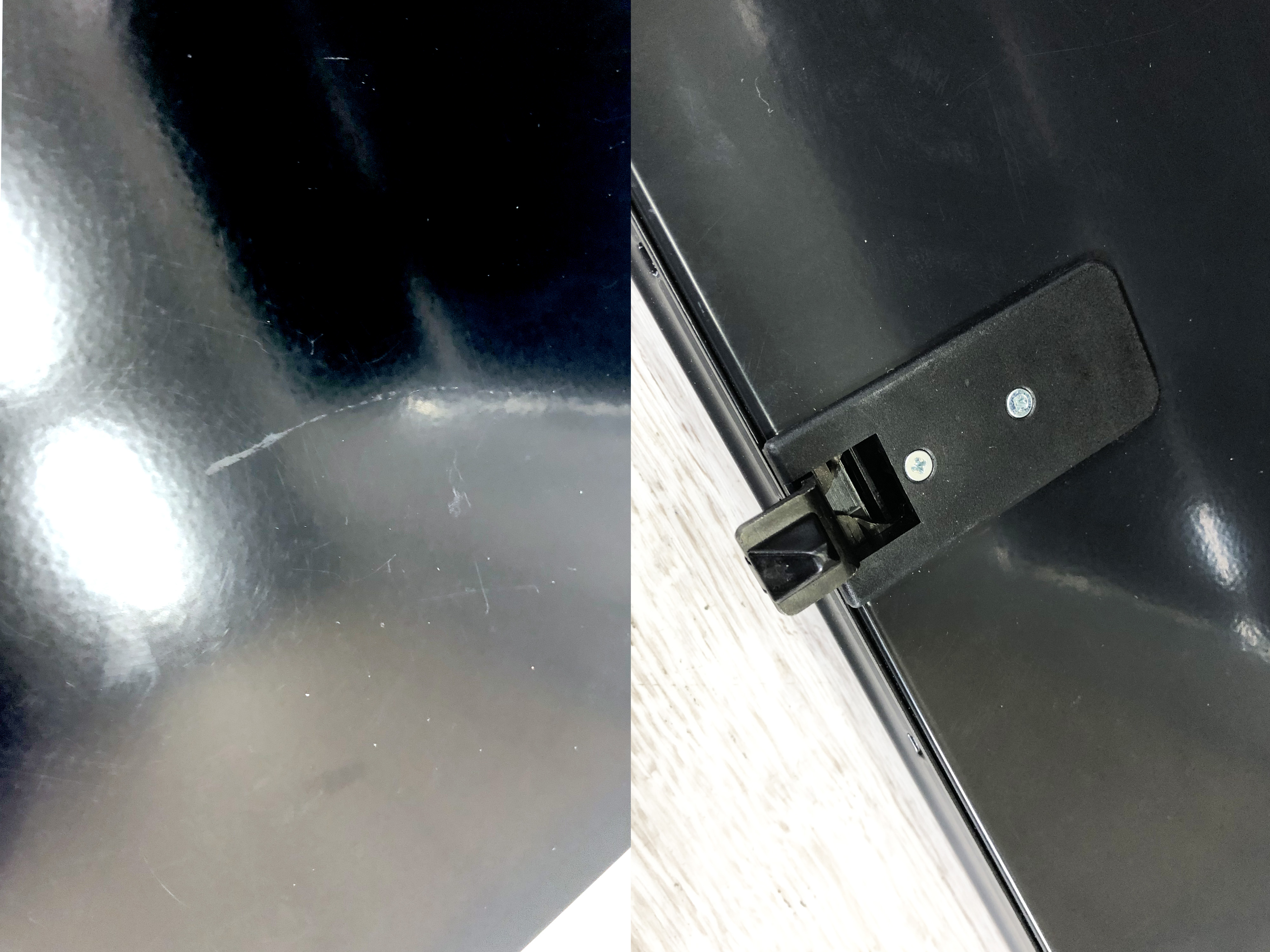 - 目立つ箇所あり傷・凹みが多数、深い傷・凹みが一部ある。(例、天板、正面、背部、サイド部分にある。)