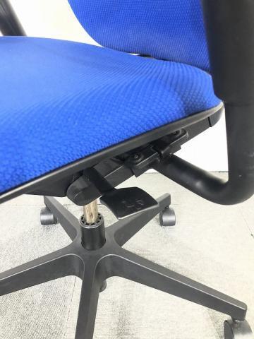例えば、座面は、イトーキ独自の"ベンディングシート"という機構により、クッション、インターシェル、空洞という三層構造になっています。 この真ん中に挟まっているインナーシェルが、着座時の姿勢に合わせて体重を分散してくれるので、どんな姿勢でも体になじみ、疲労を軽減してくれます。 さらに、座面は前後に4センチほど奥行きを調整でき、前傾姿勢で座りたい、深く腰掛けたい、膝裏を圧迫されたくないなど、個人の好みに合った快適さにカスタマイズが可能となっています。