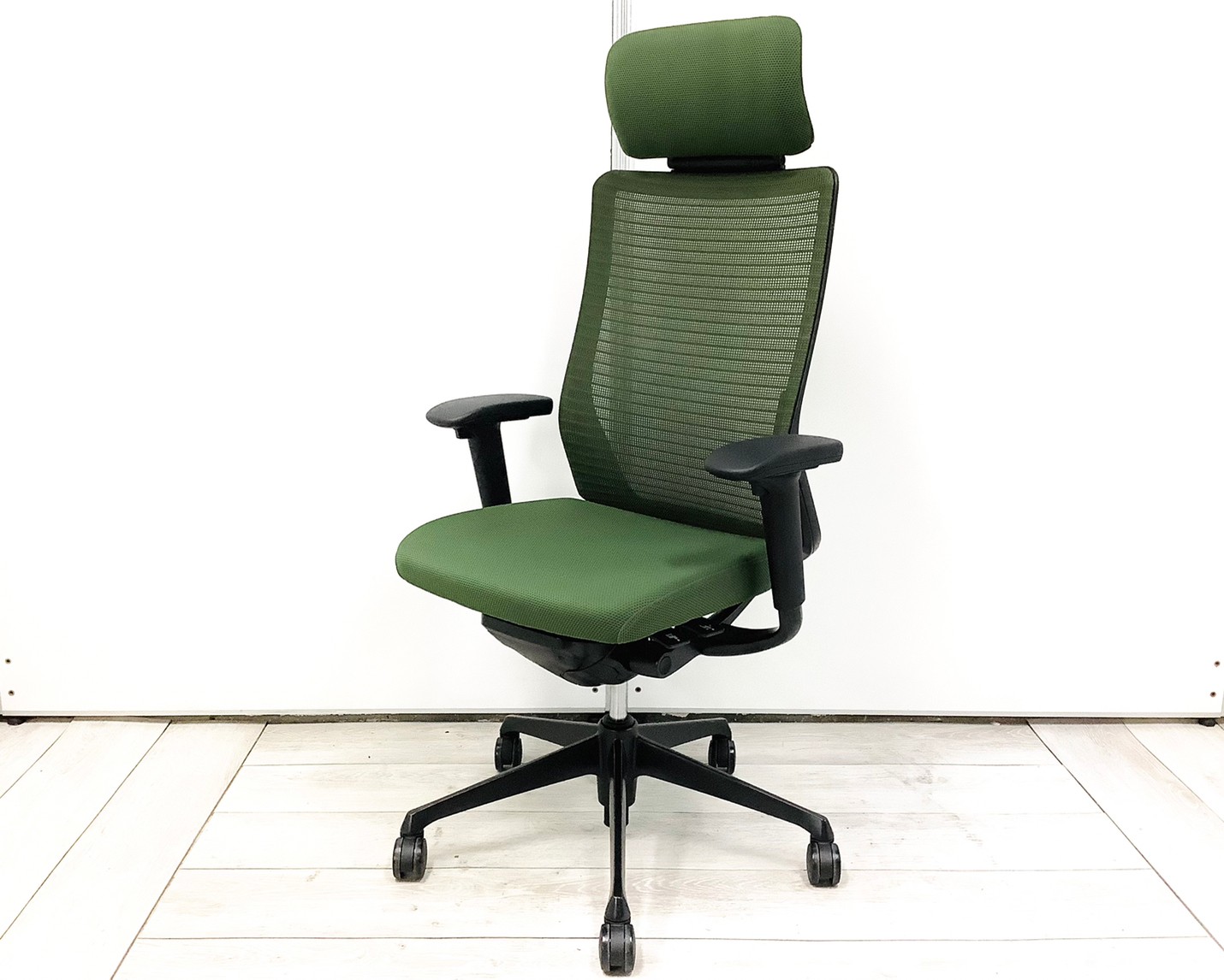 【ヘッドレスト付きならコレ!厚めのクッションで快適な座り心地を実現!】■オカムラ(okamura)製 コーラル(choral)チェア ■エクストラハイバック ■ヘッドレスト付き ■背メッシュ ■グリーン ■デザインアーム〈岐阜・愛知・三重・静岡・福井〉