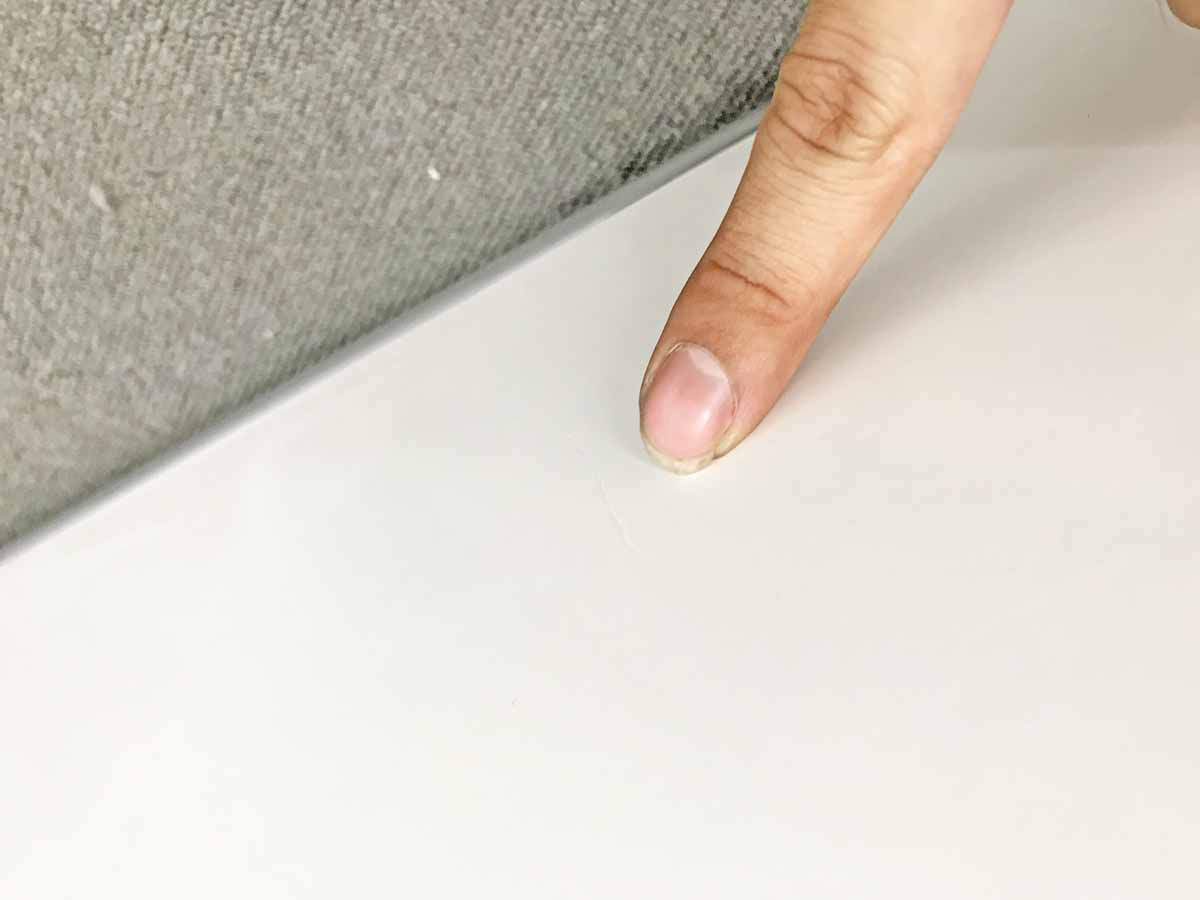 - あり黄ばみ・変色が広い範囲にうっすらある、または濃い黄ばみ・変色が一部ある。(例、天板、正面、背部、サイド部分にある。)