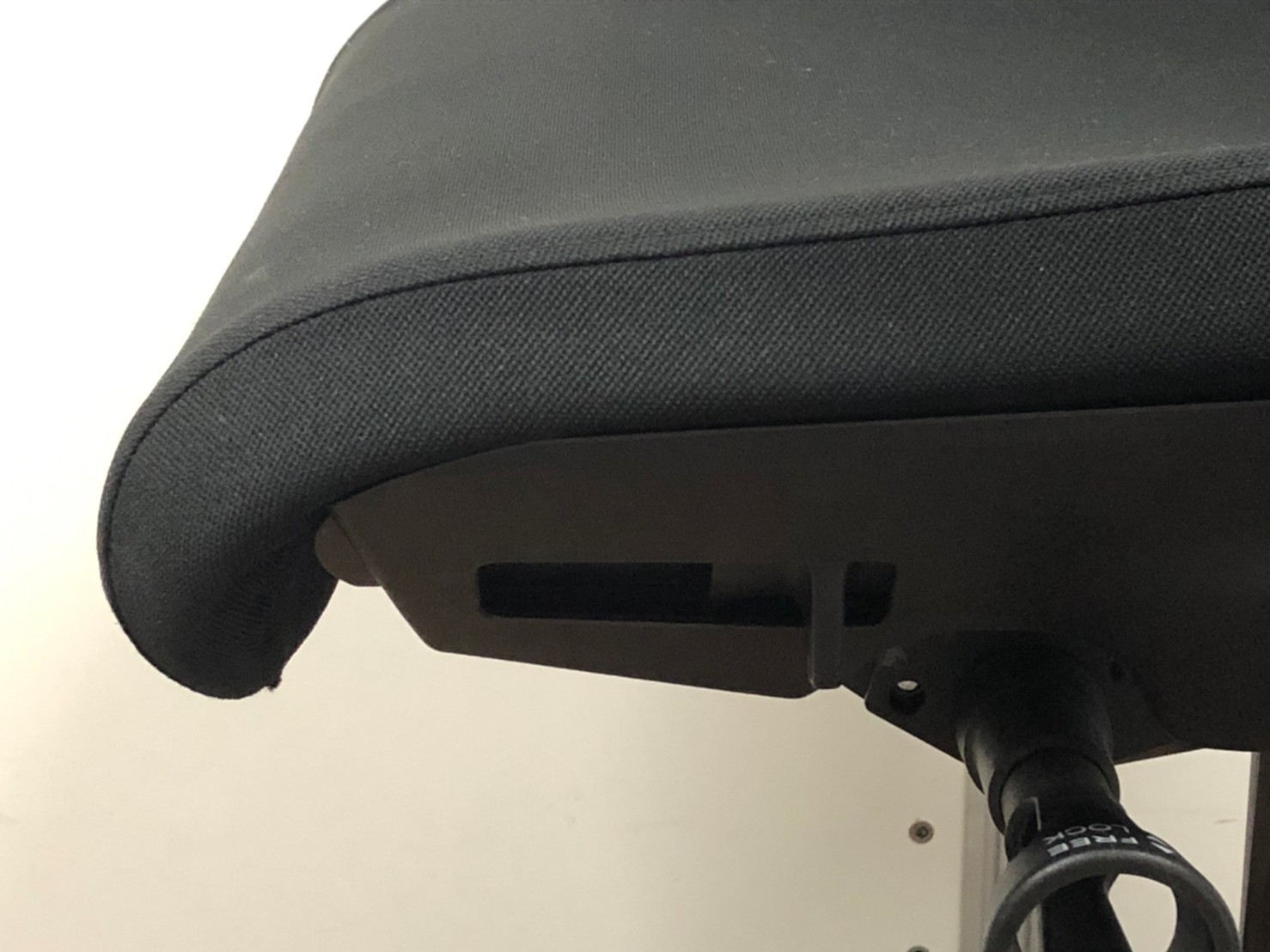 座面下レバー操作によって座面の前部分が折れ曲がることにより、
