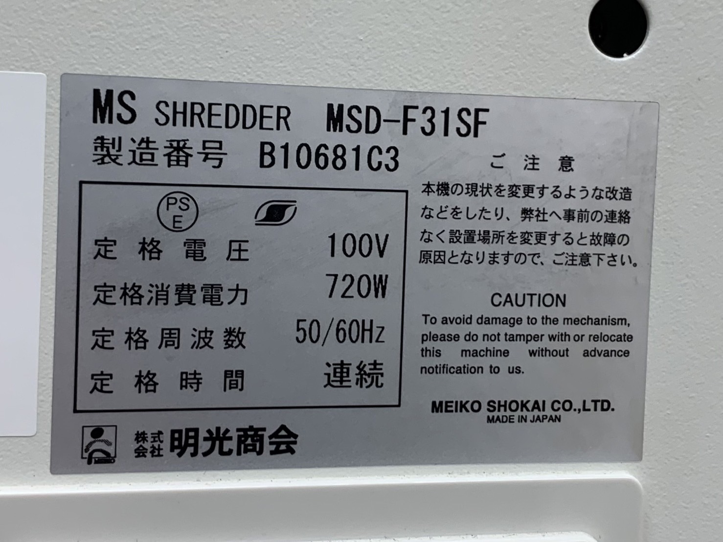 【2012年製】【最大裁断約55枚】ばりばり裁断ハイパワーシュレッダー蓮田入店◆明光商会 MSD-F31SF【RP】- 埼玉本店