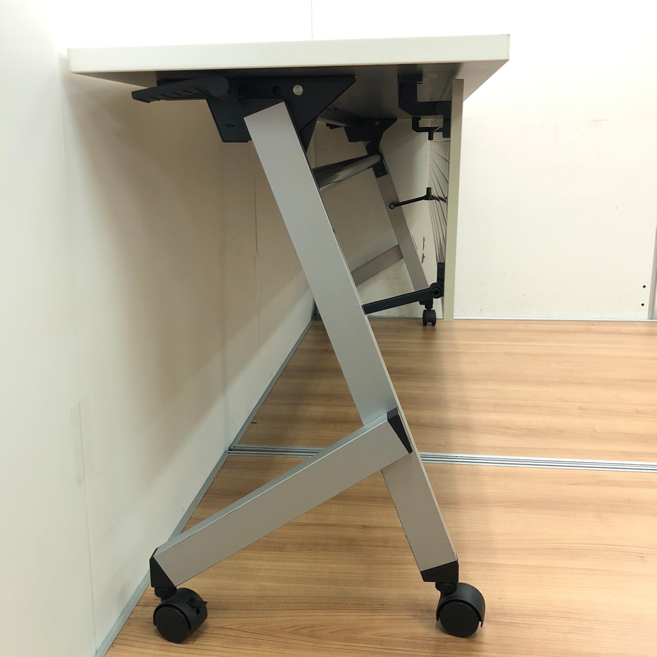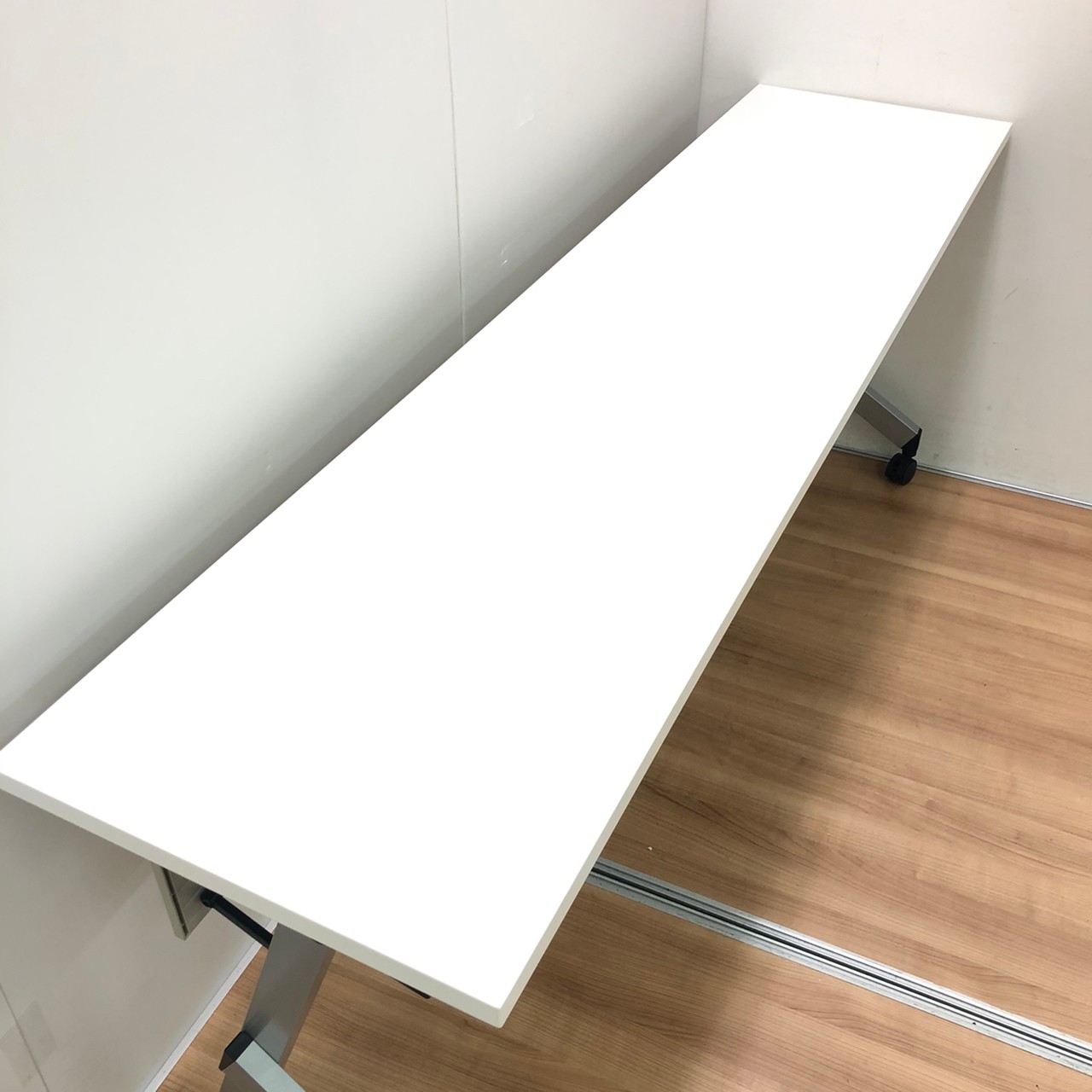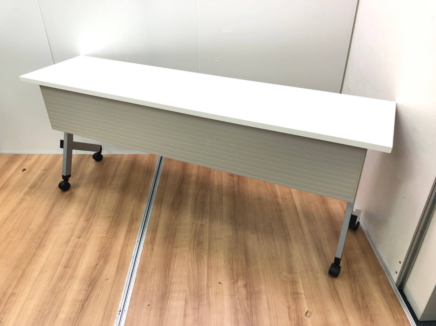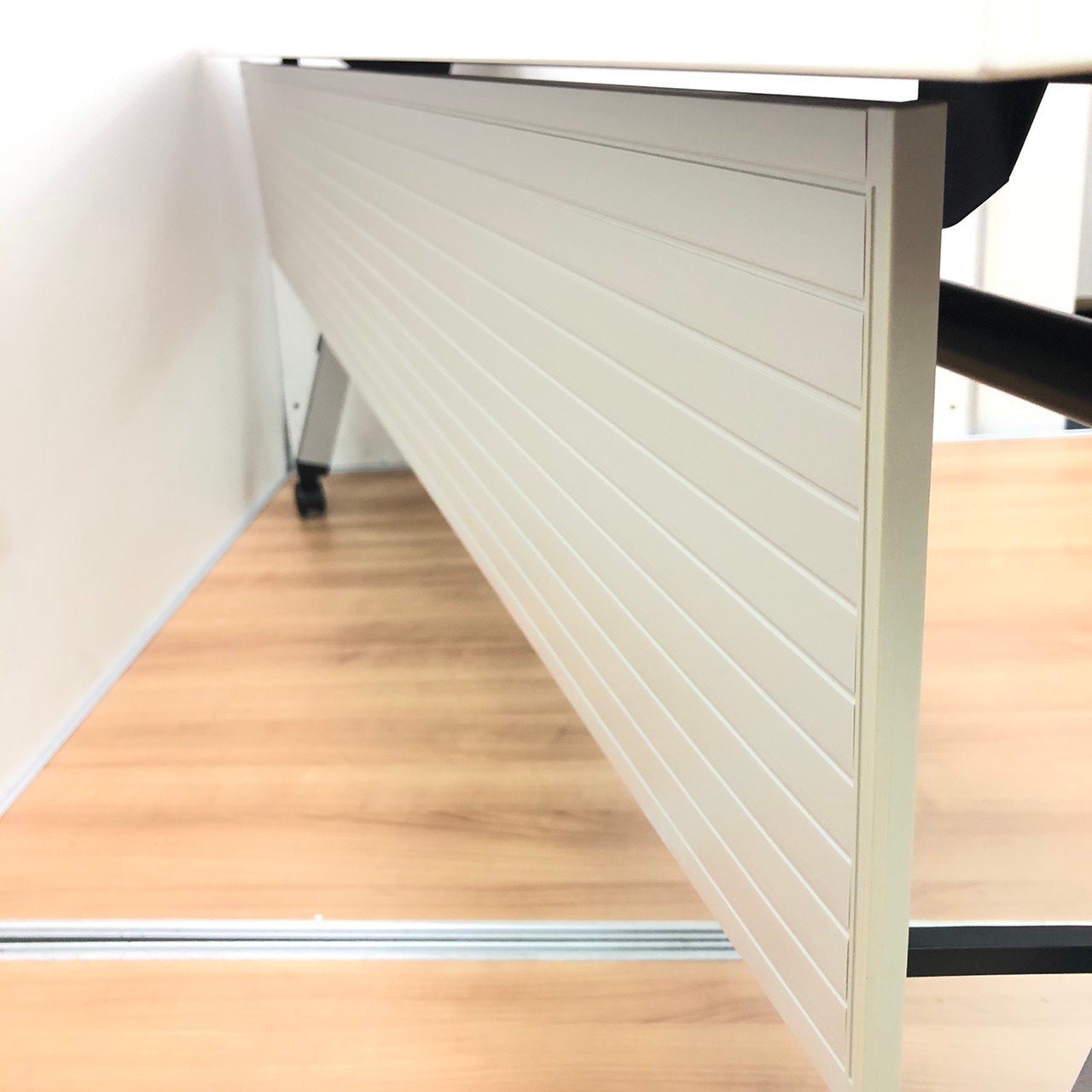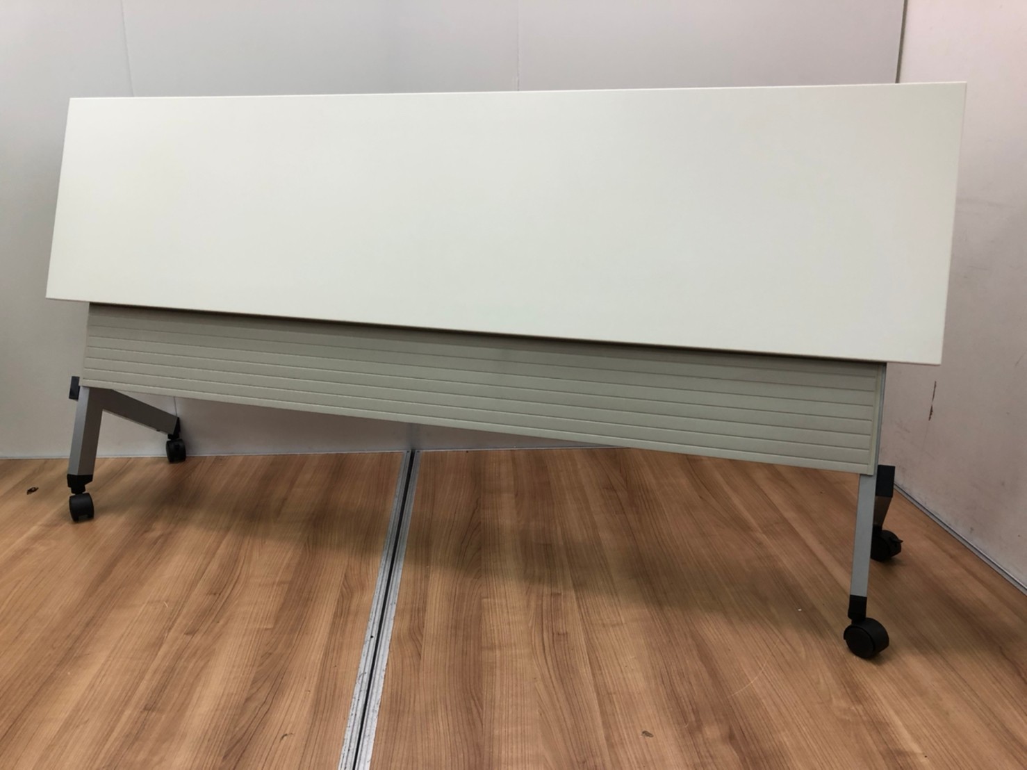 使い勝手抜群!天板を跳ね上げて収納ができるスタックテーブルが入荷!幕板付きで安心! ◆内田洋行/プラッテ(Platte)/ホワイト 横幅1500mm(奥行450mm)フラップテーブル