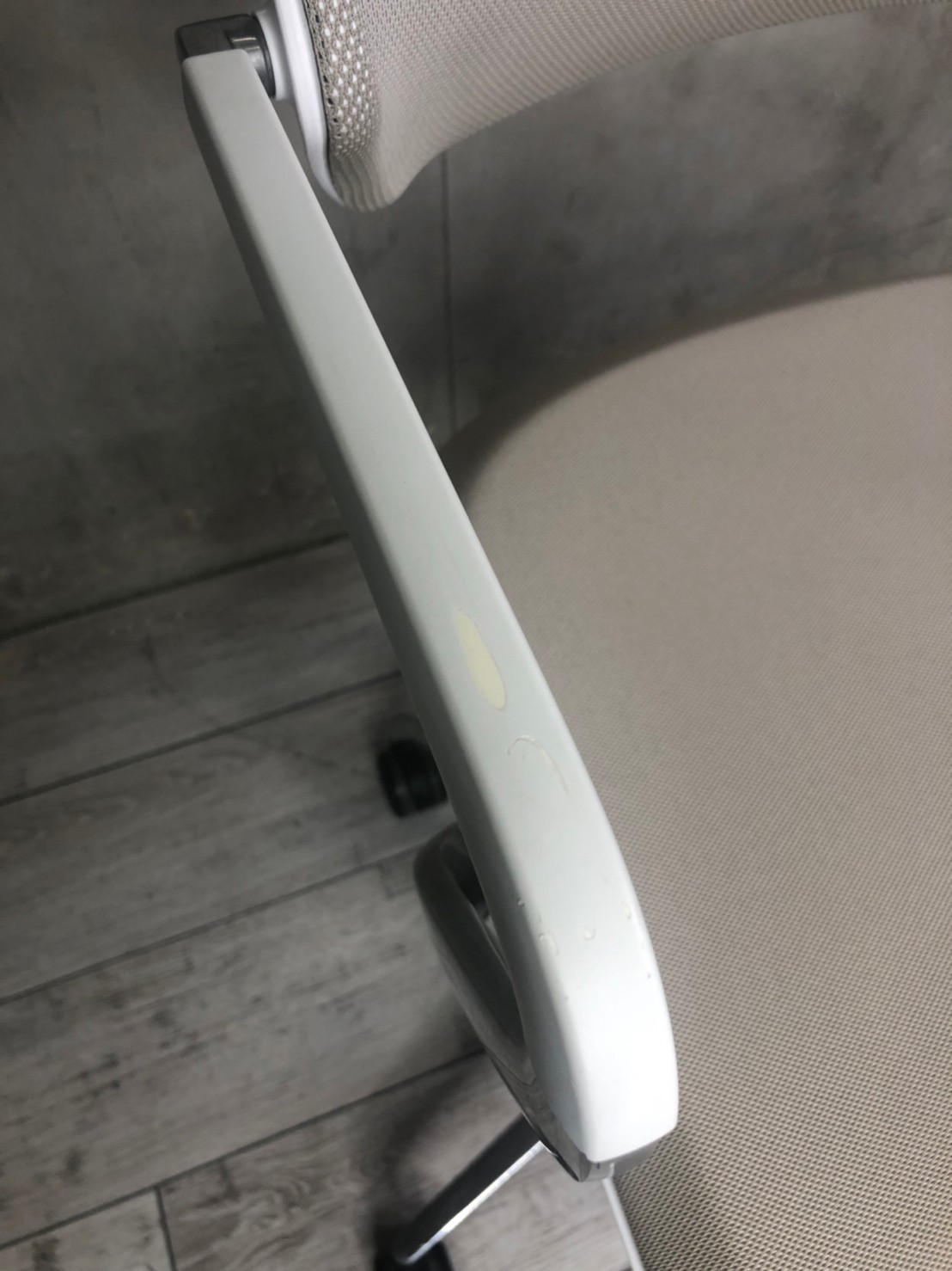 - かなり強い濃い黄ばみ・変色が商品全体にある。(例、座面・背もたれ、脚部等にある。)