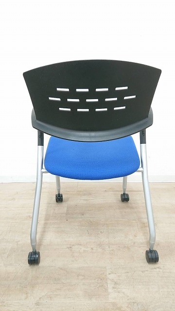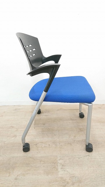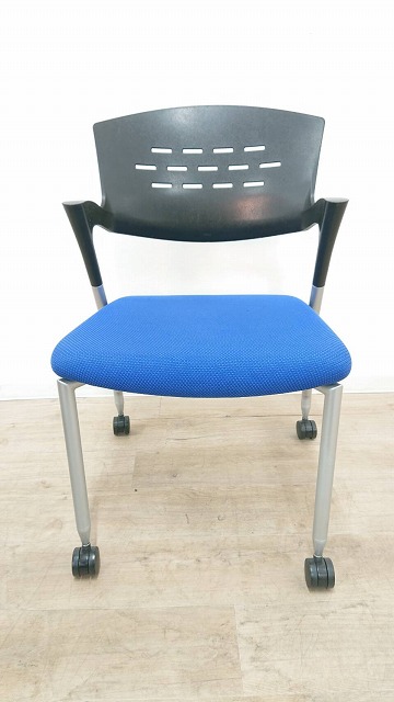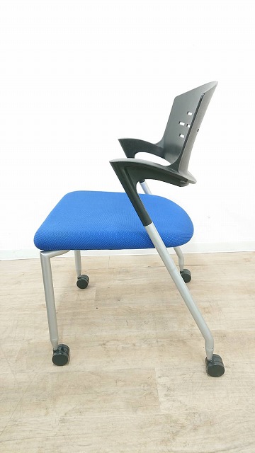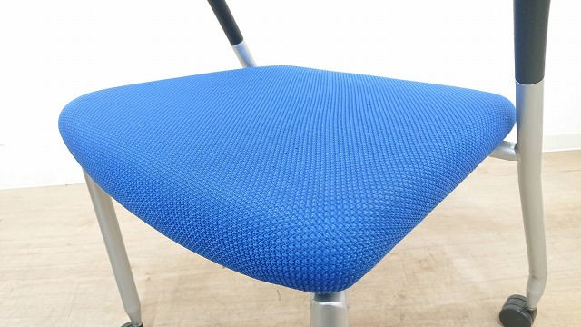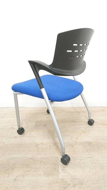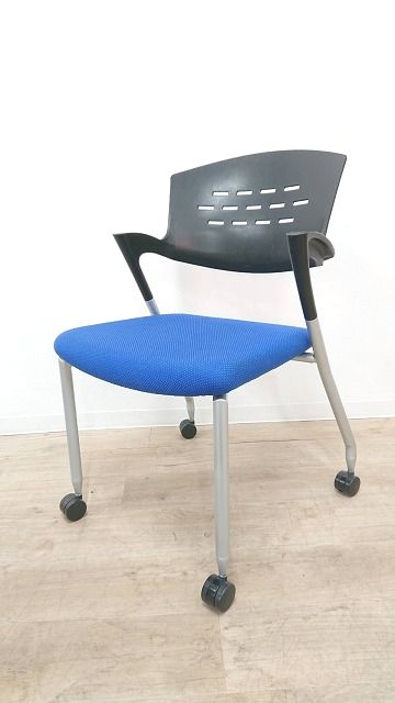 【ブラック×ブルーカラーゆったり座れて快適なミーティングチェア】【キャスター付きで移動もラクラク】■イトーキ製 カクタス スタッキングチェア※仙台店撮影画像※- 仙台店