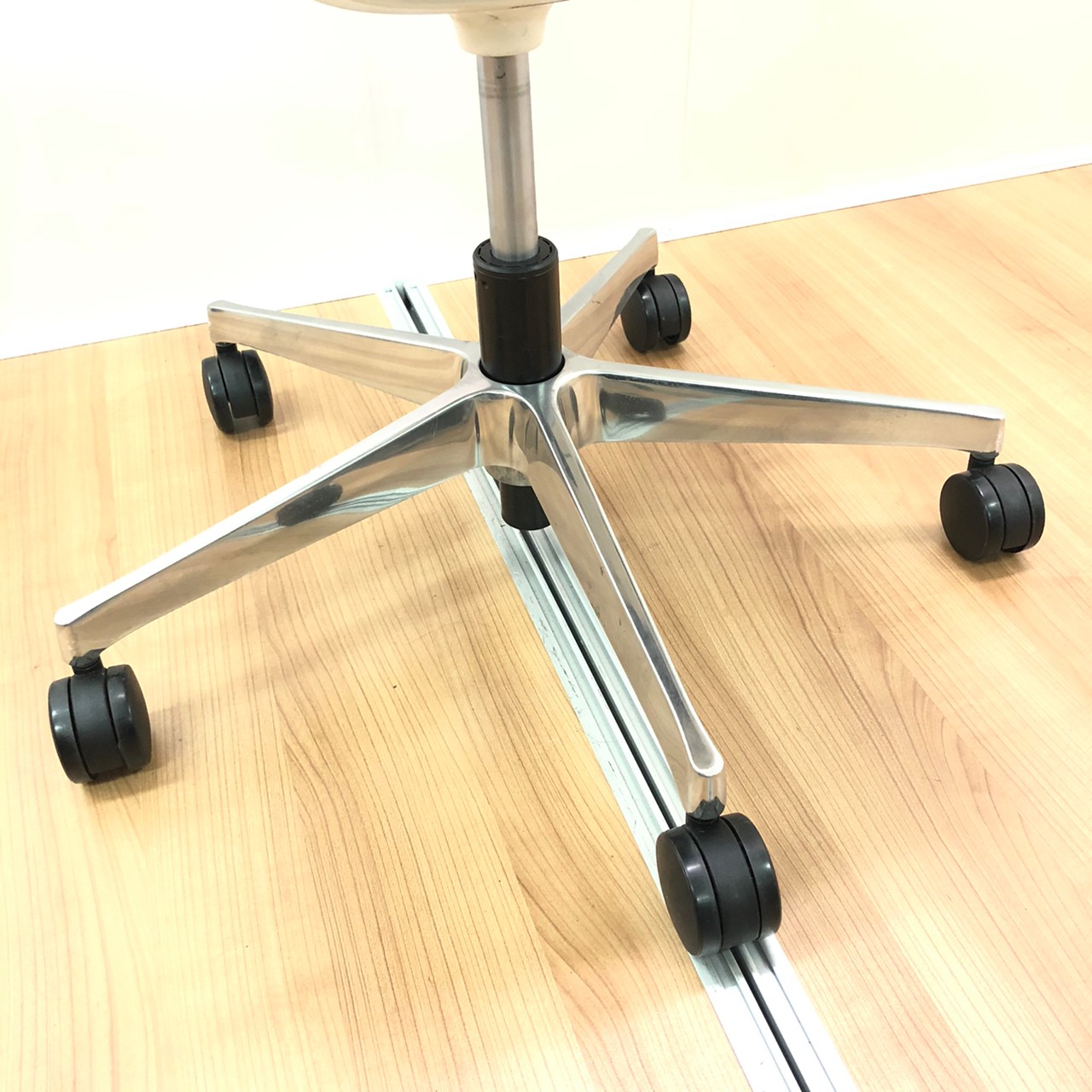 - 座面の高さ調節や背と座がシンクロしてスライドするアンクルチルトリクライニングなど、基本的な調節機能を搭載。