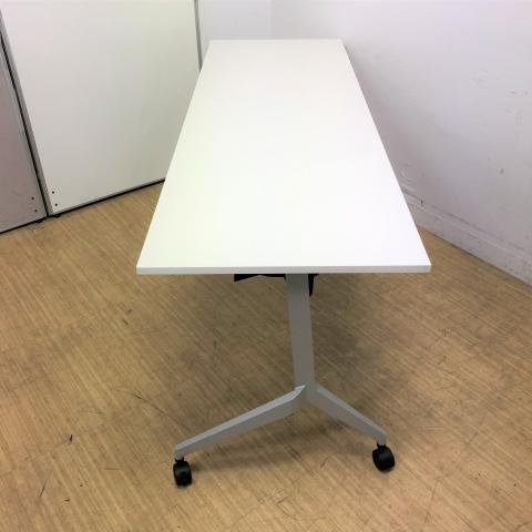 【定価約7万円】コンパクトな幅800㎜サイズのスタッキングテーブル!【在庫入替セール!】 ■内田洋行/パラグラフ/ホワイト フラップテーブル 天板跳ね上げ 幕板付き