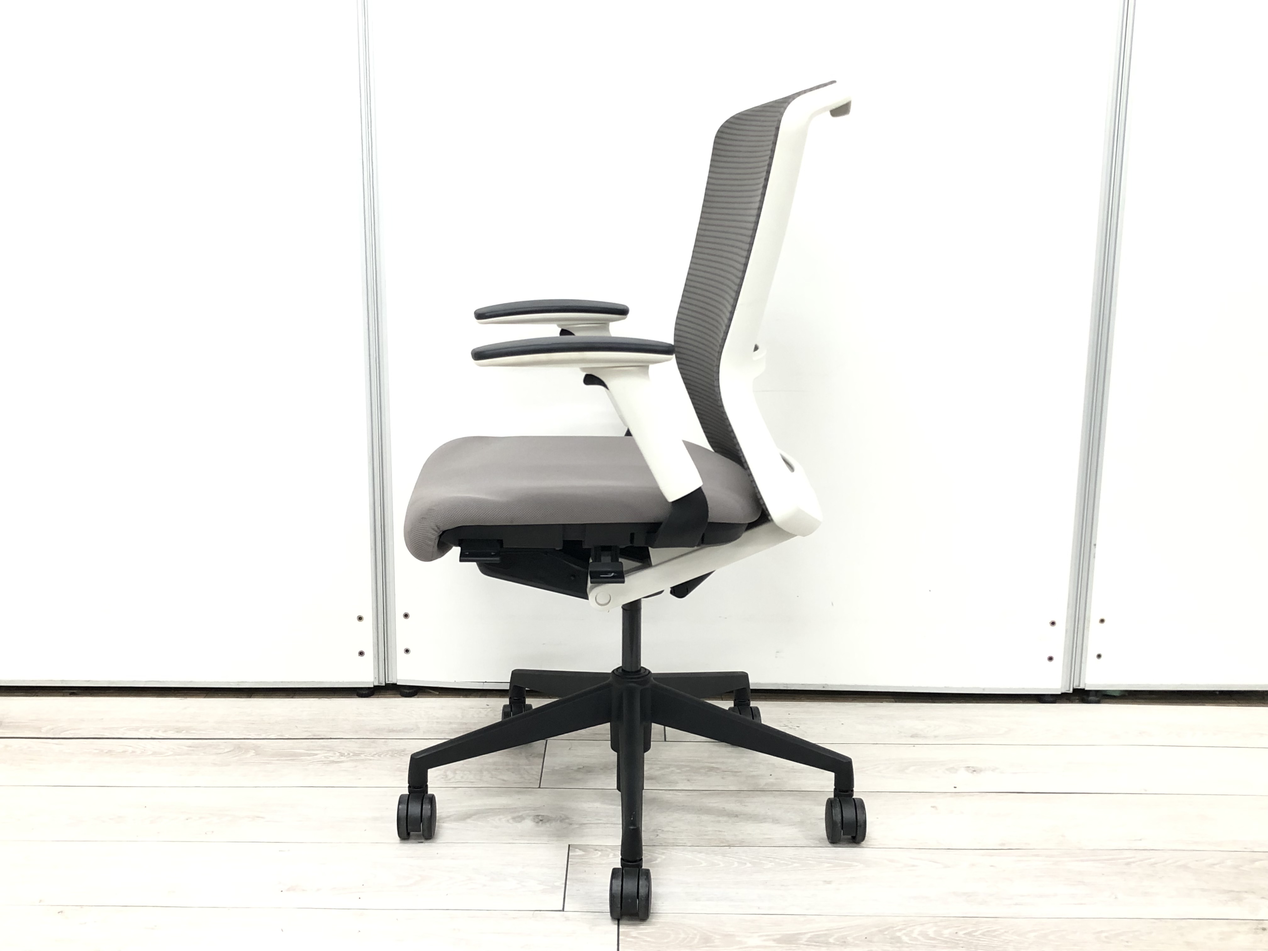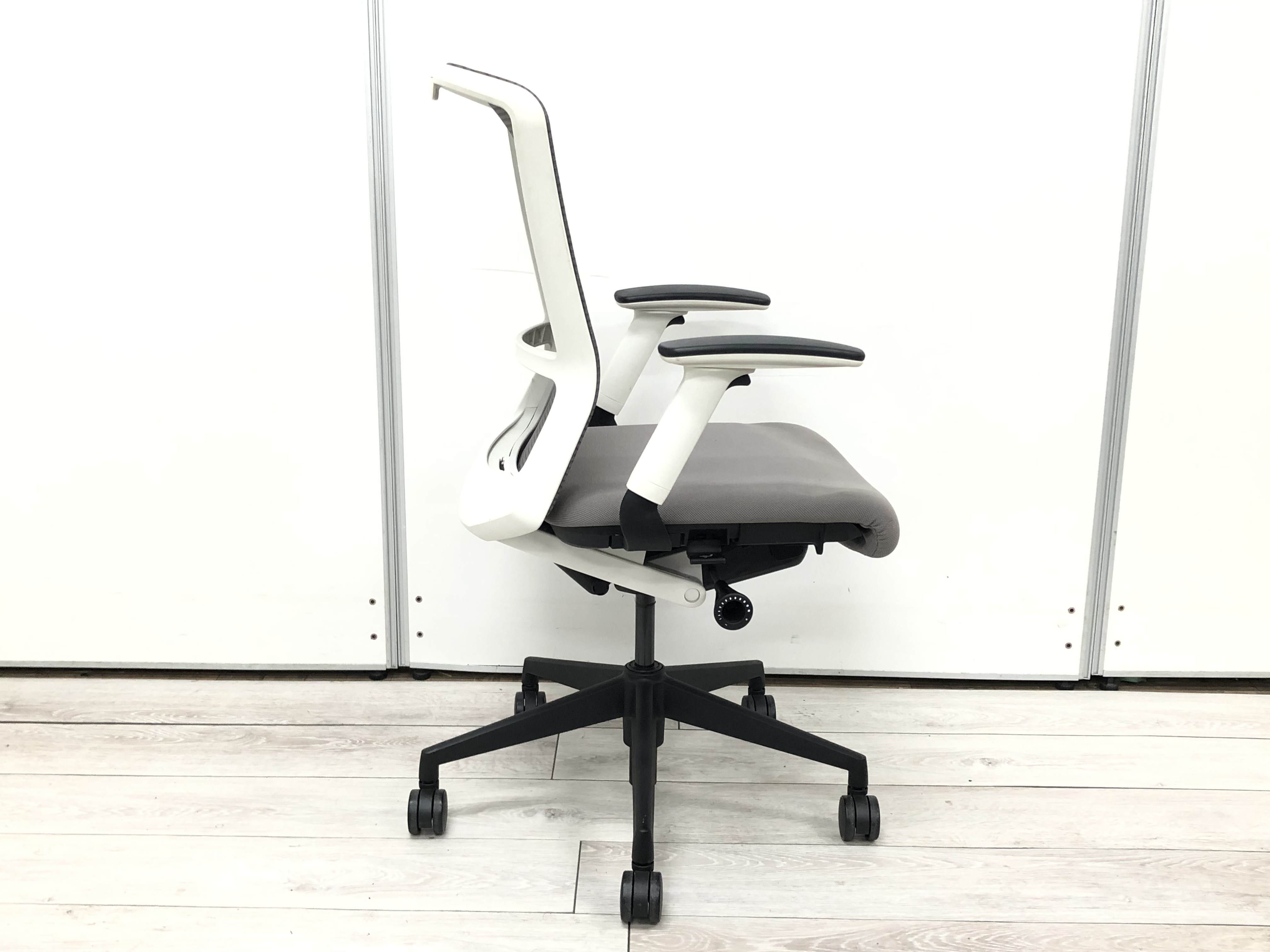また、個人的にオススメなのは『フルアジャスタブル肘』というアーム部分が斜め前に伸びていくタイプの肘置きを搭載したモデルです。高さを上げれば上げるほどパッドが前方に迫り出していくので、デスクワークの際にちょうど肘を置きたい場所に肘置きがきます。これがとても快適なので、ぜひ一度お試しいただきたいです!*エルフィチェアの肘パーツはフルアジャスタブル肘の他に、固定肘、アジャスタブル肘などがあります。