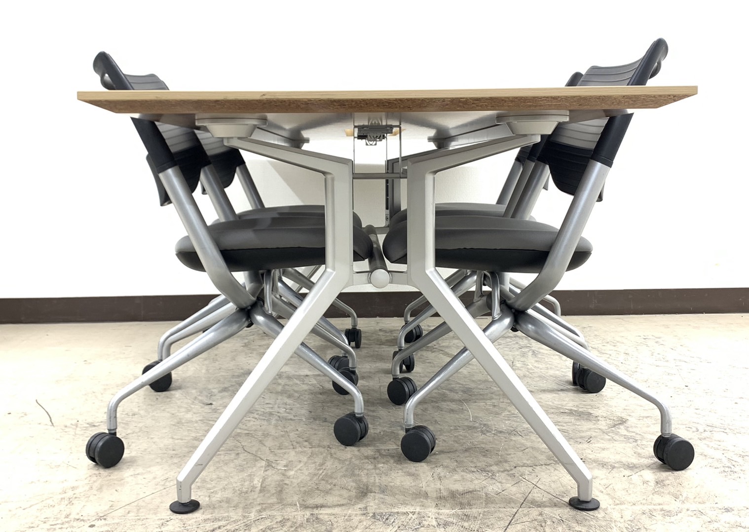 【1台入荷】ナイス木目カラーミーティングテーブル+ネスティングチェアセット※配線口付き◆イトーキ製【RP】- 埼玉本店