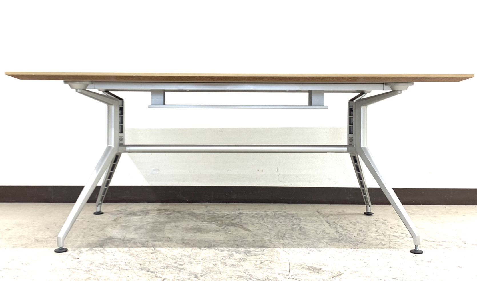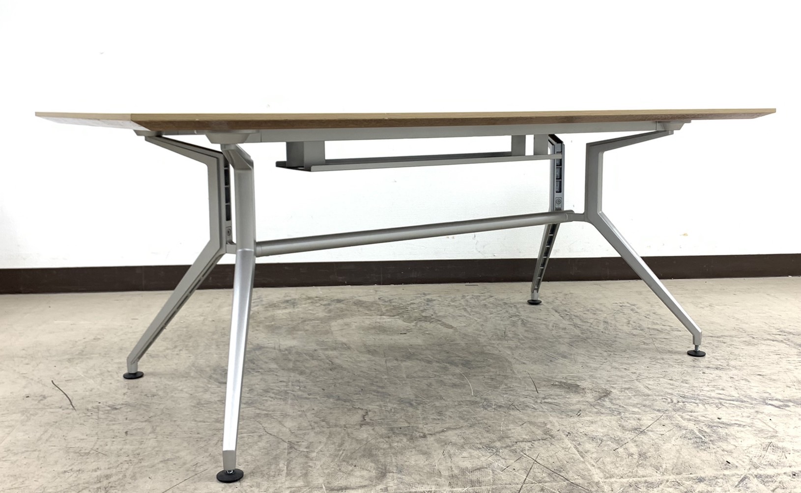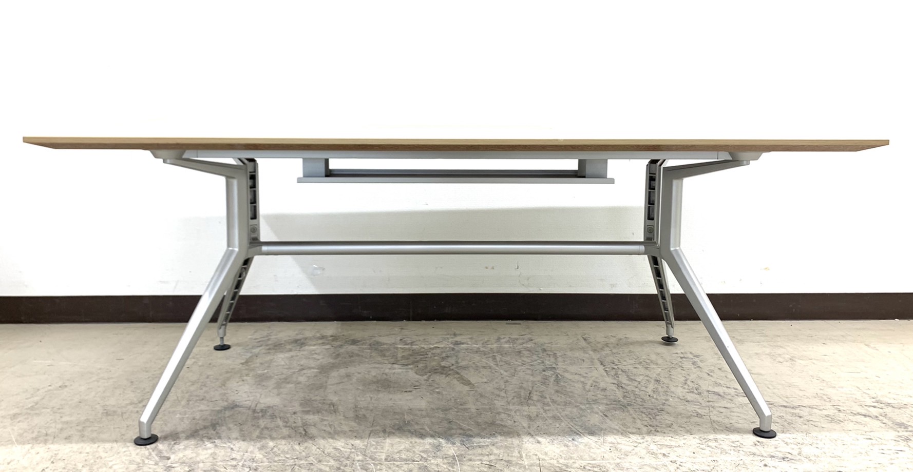 【会議室だけでなく休憩室でも!6~8名様対応・大型テーブル】■イトーキ(ITOKI) DDDシリーズ ミーティングテーブル 会議テーブル 幅2400×奥行900mm ■木目ナチュラル天板 脚シルバー色 オフィスバスターズ東大阪店
