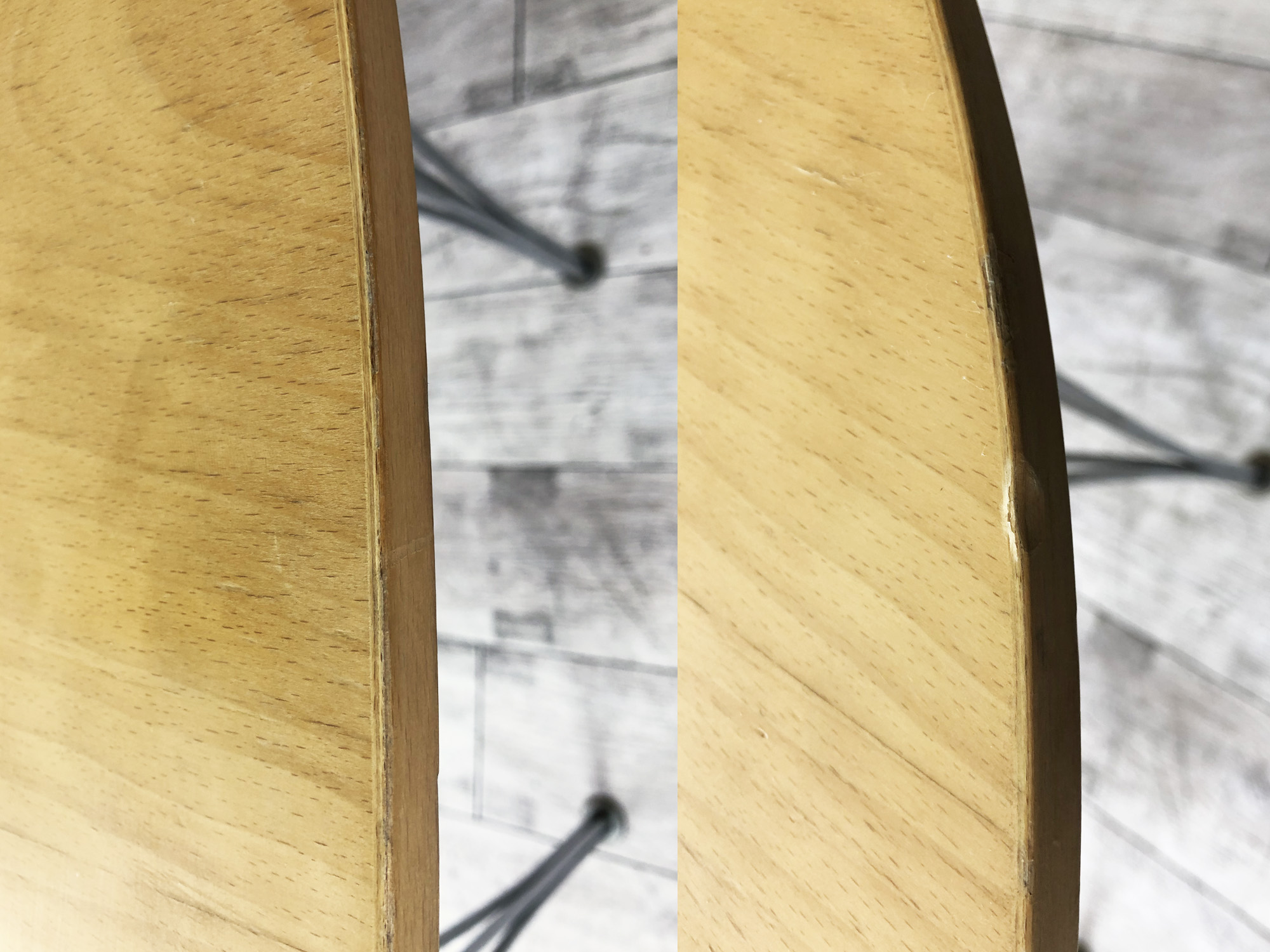 - 目立つ箇所あり傷・凹みが多数、深い傷・凹みが一部ある。(例、天板、幕板、棚板、サイド部分、脚部等にある。)