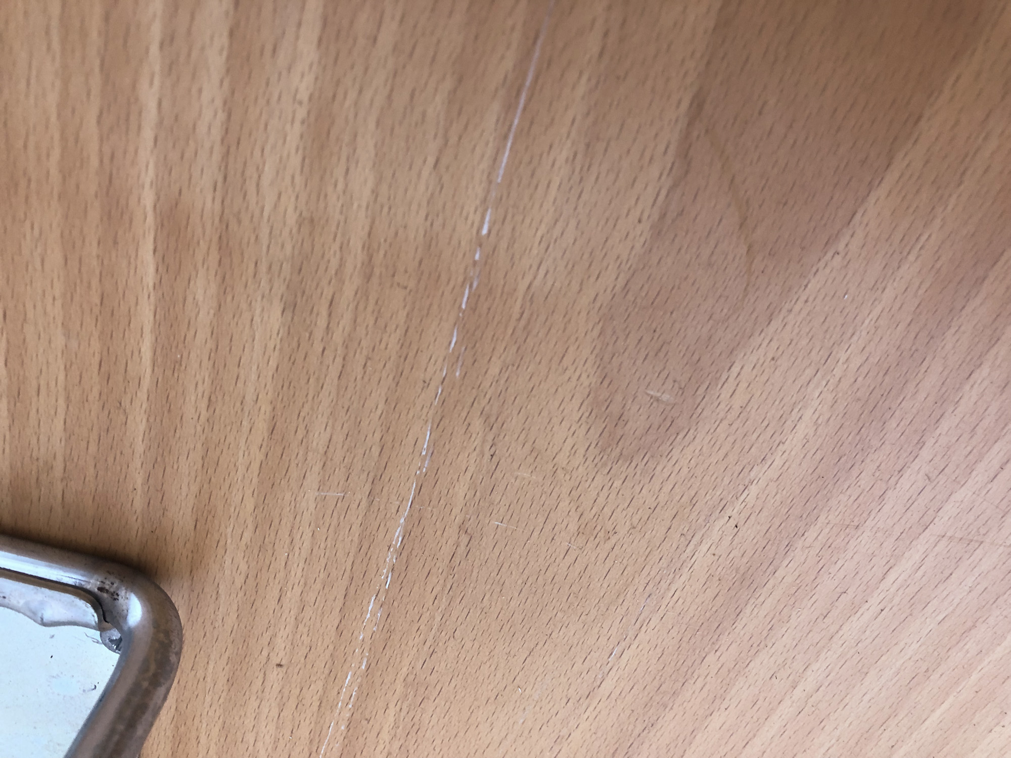 - 壊れている天板歪み、アジャスター無し、キャスター使用不可のようにそのテーブルの本来の効用を果たすための機能に不具合がある。