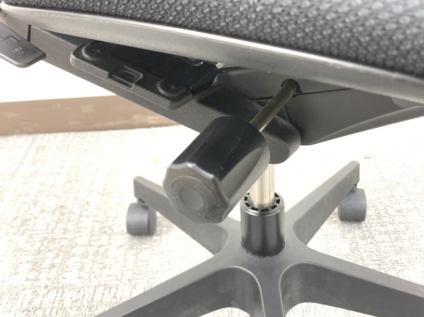 例えば、座面は、イトーキ独自の"ベンディングシート"という機構により、クッション、インターシェル、空洞という三層構造になっています。 この真ん中に挟まっているインナーシェルが、着座時の姿勢に合わせて体重を分散してくれるので、どんな姿勢でも体になじみ、疲労を軽減してくれます。 さらに、座面は前後に4センチほど奥行きを調整でき、前傾姿勢で座りたい、深く腰掛けたい、膝裏を圧迫されたくないなど、個人の好みに合った快適さにカスタマイズが可能となっています。