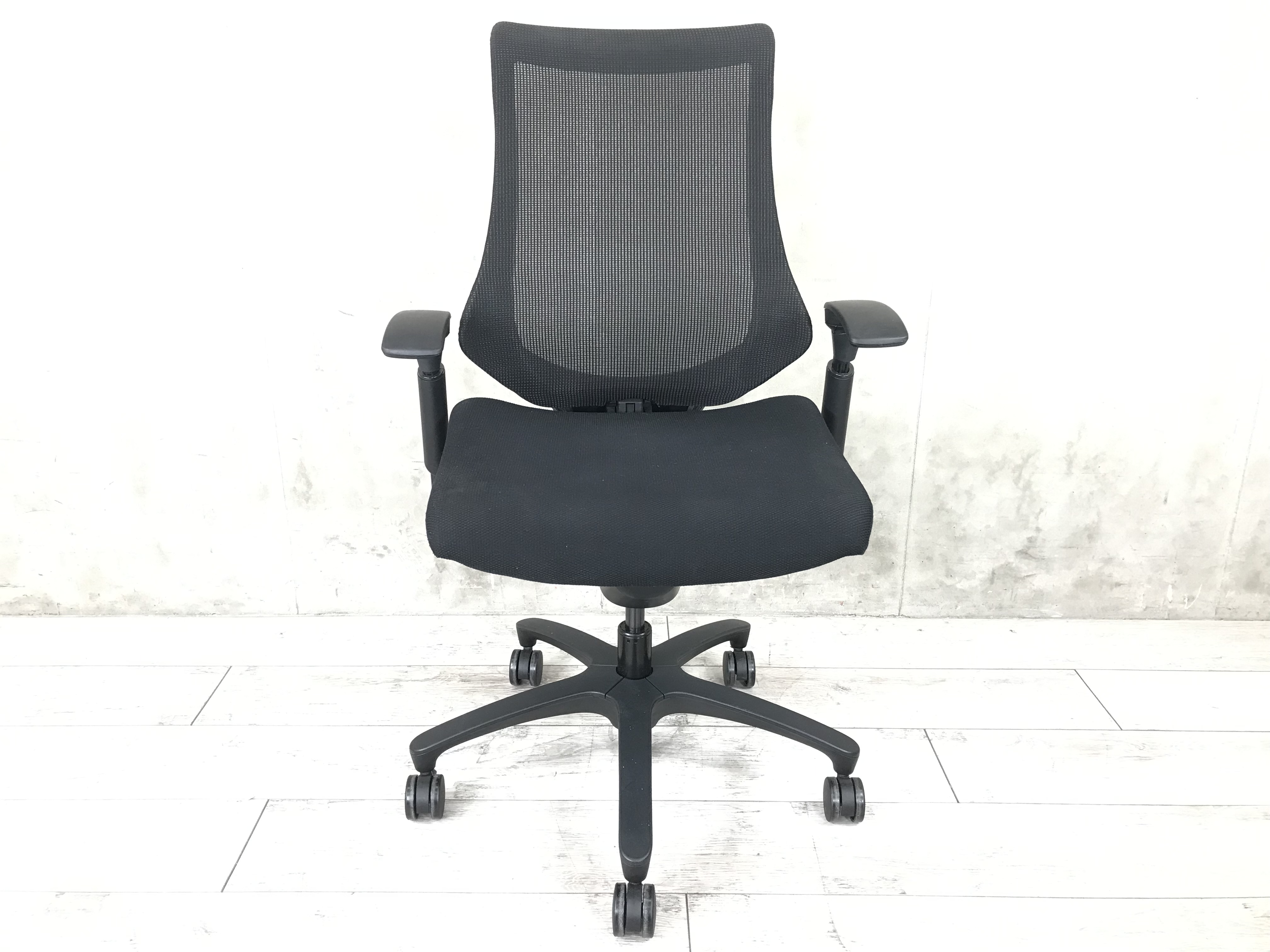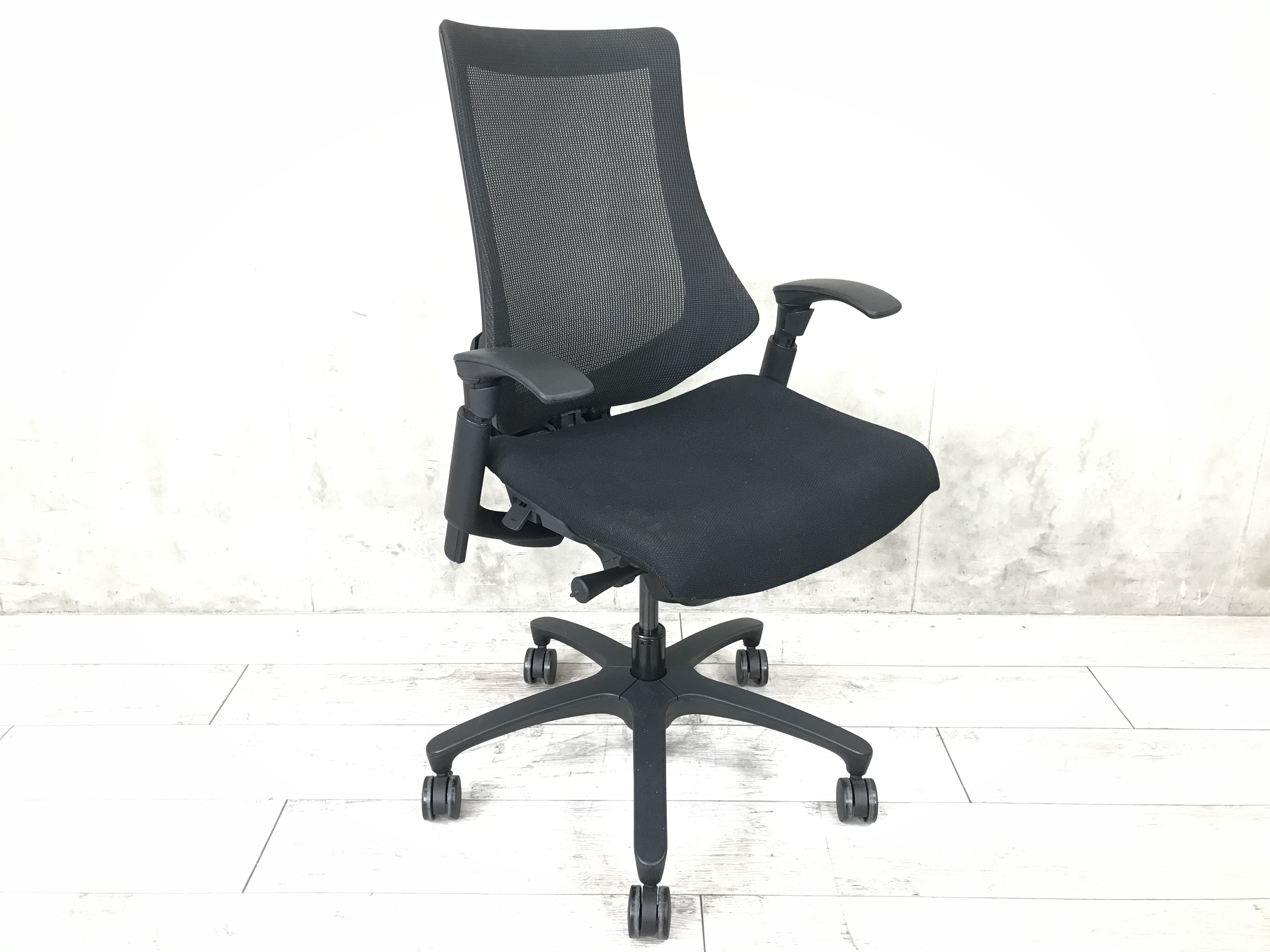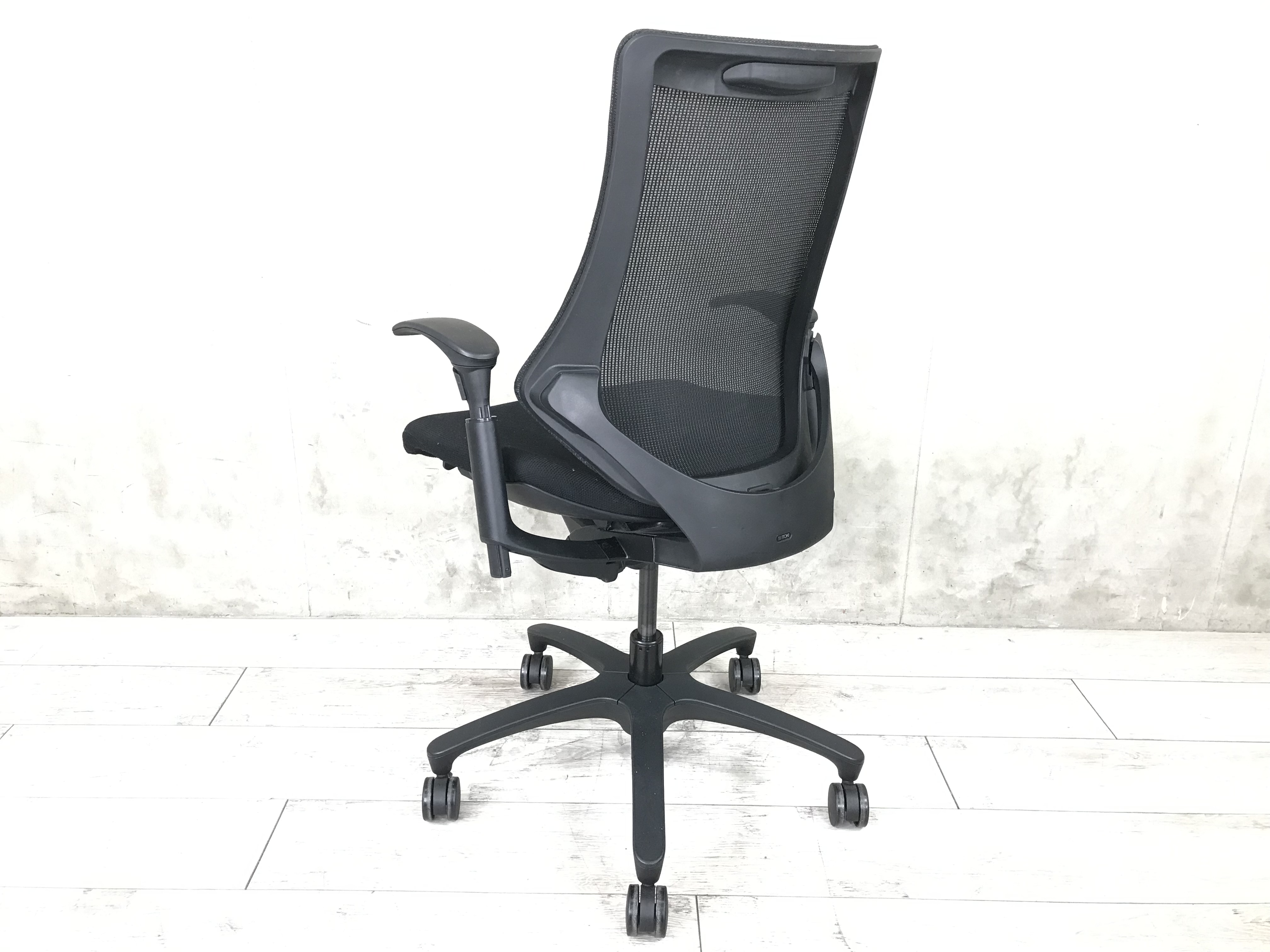 【三次元フォルムが腰にフィット!】希少なエラストマータイプ! ■イトーキ製 エフチェア 肘付 ブラック ハイバック ■姿勢の変化にフレキシブルに対応!