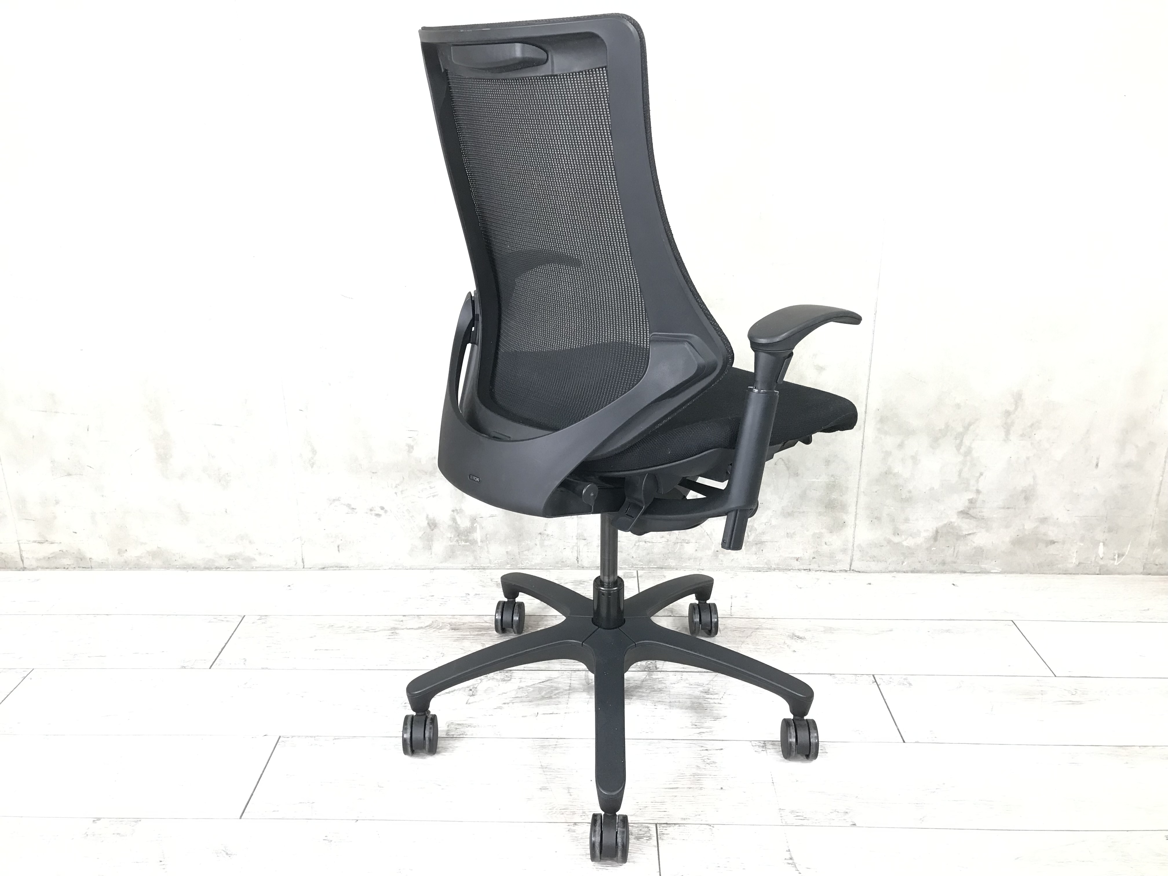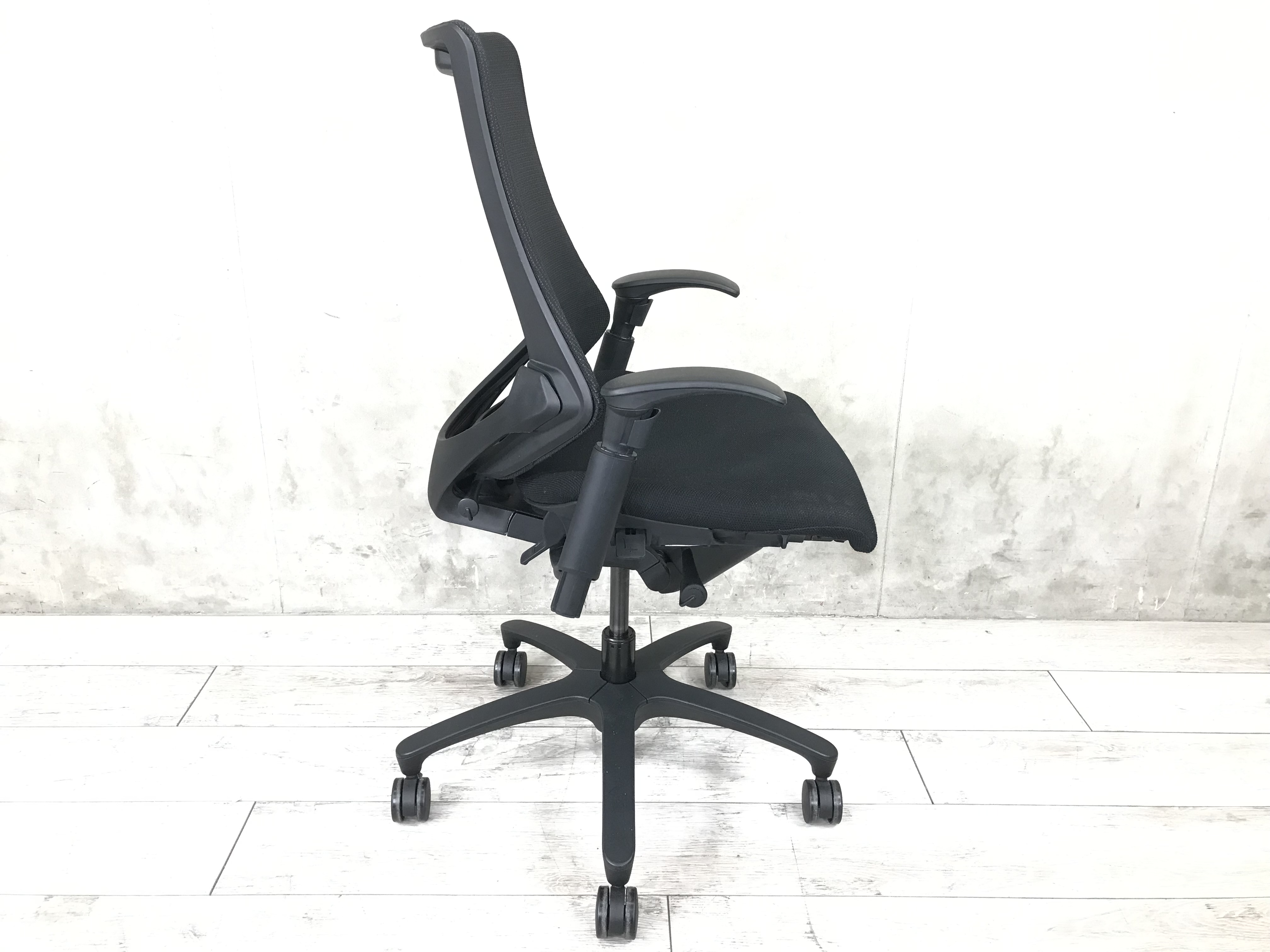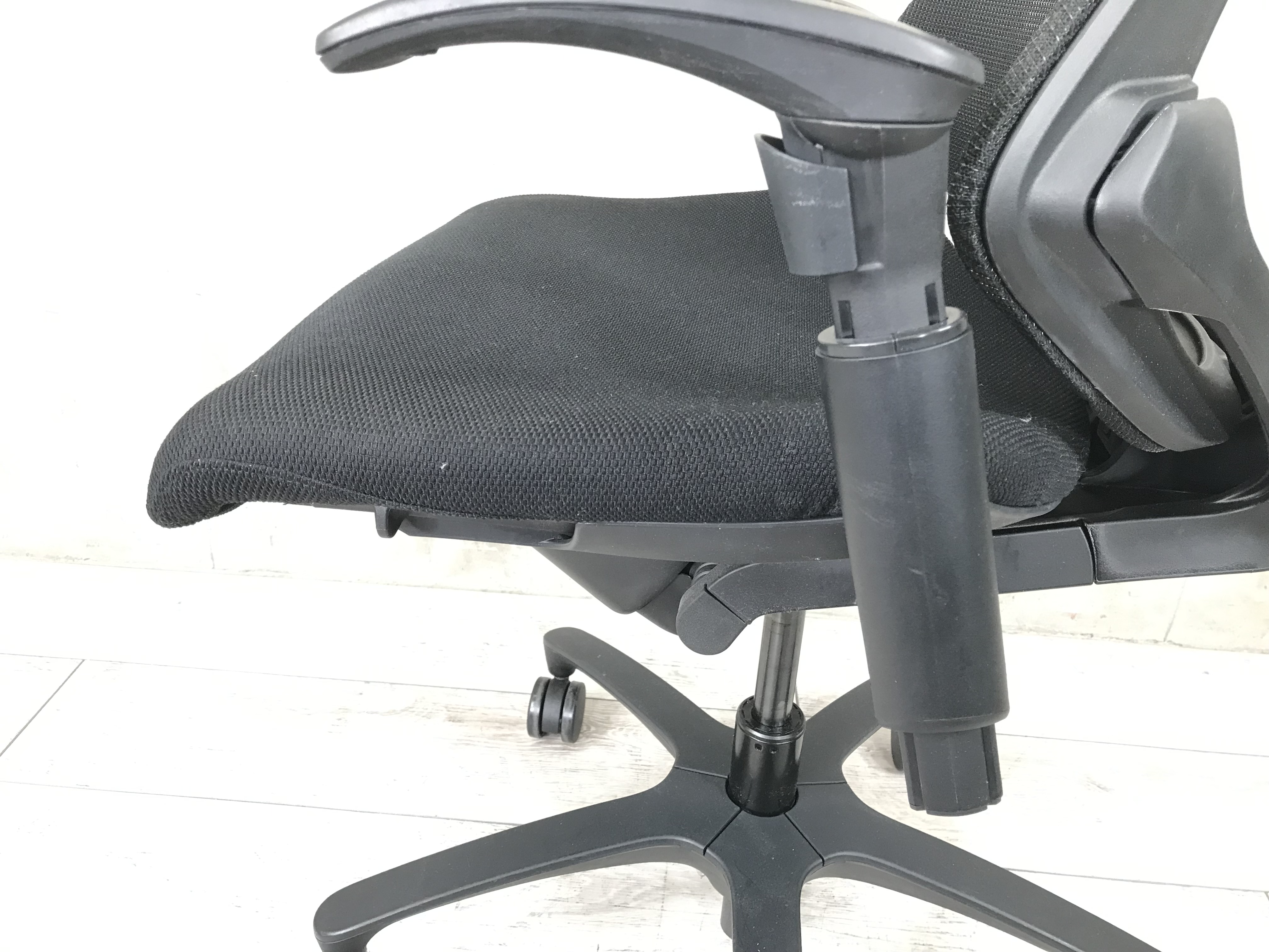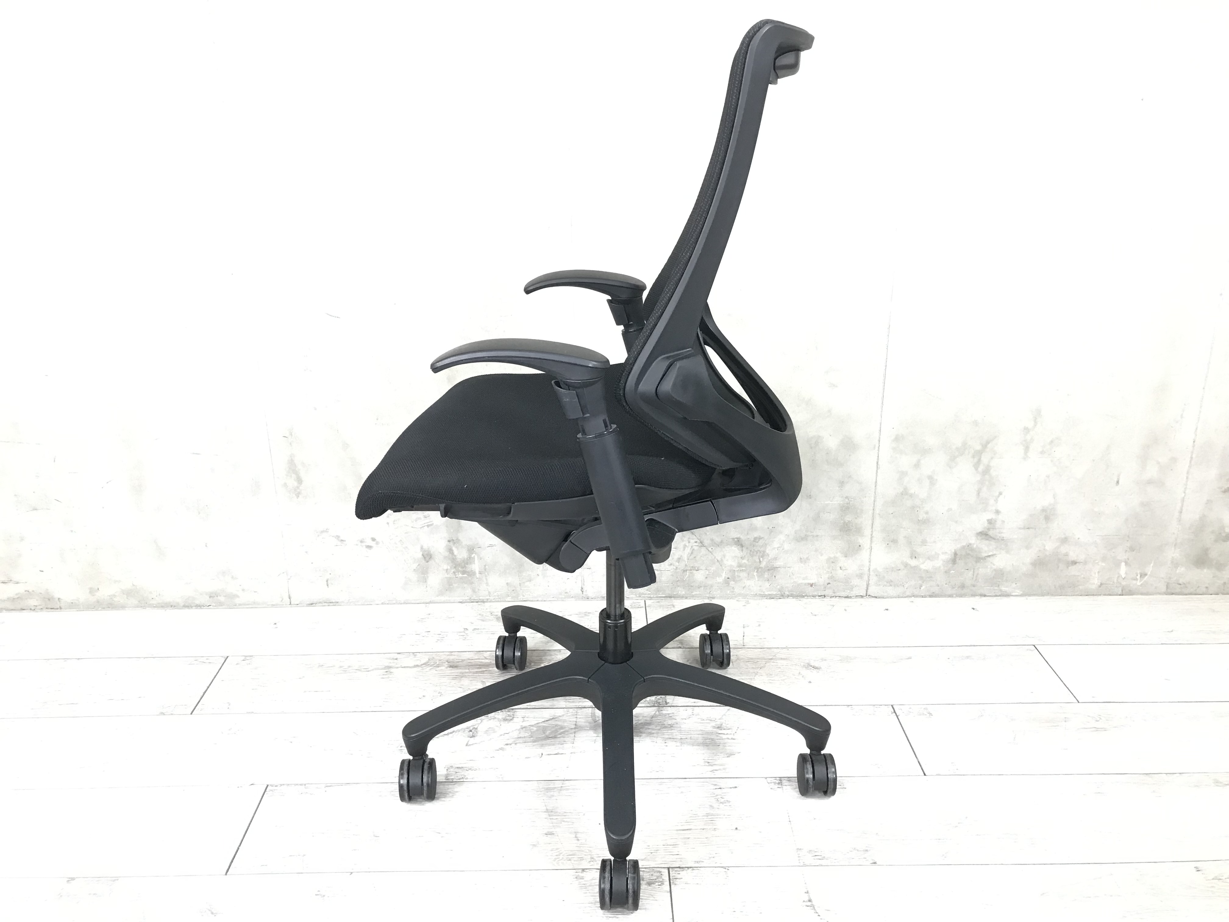 【三次元フォルムが腰にフィット!】希少なエラストマータイプ! ■イトーキ製 エフチェア 肘付 ブラック ハイバック ■姿勢の変化にフレキシブルに対応!