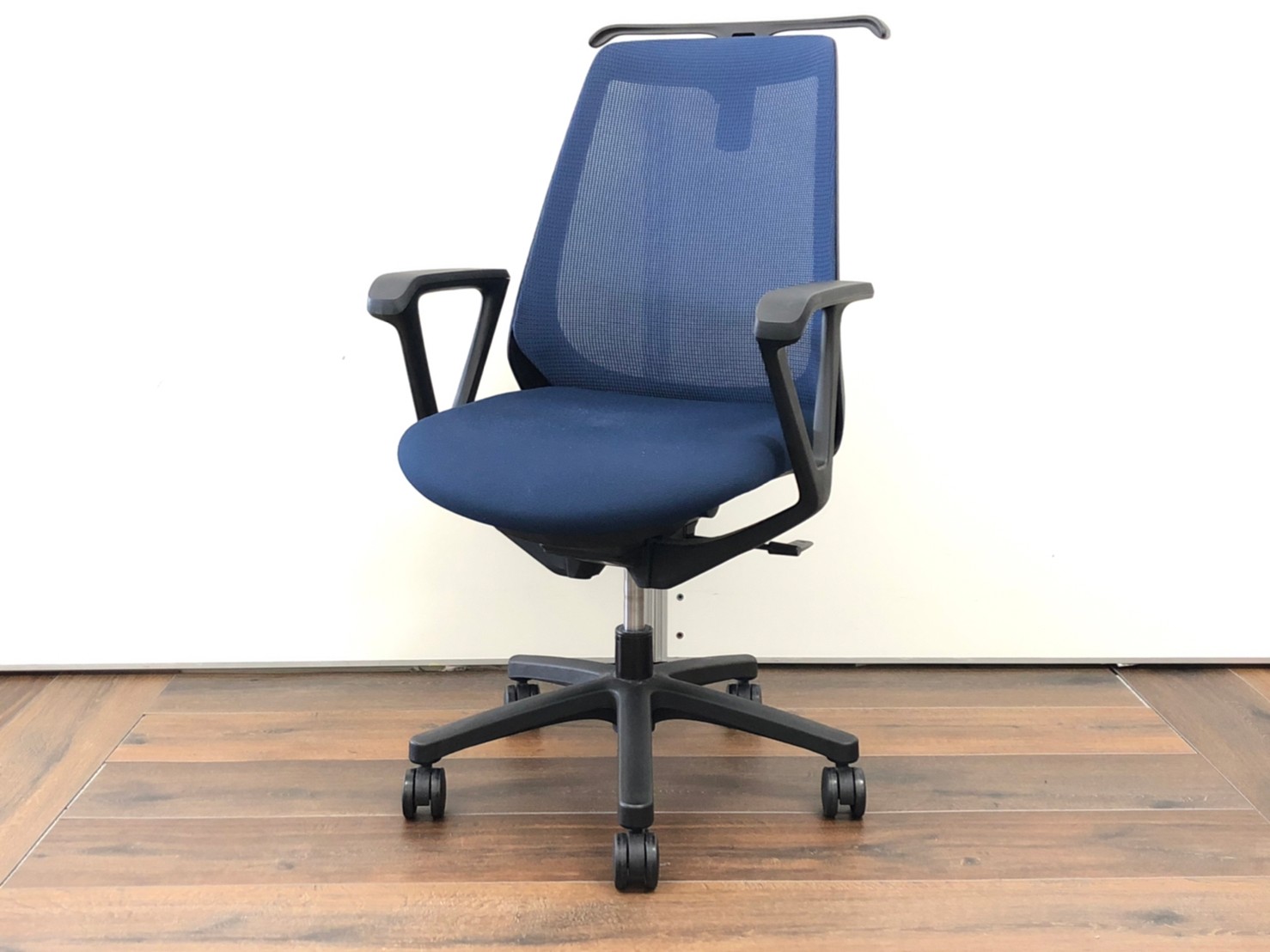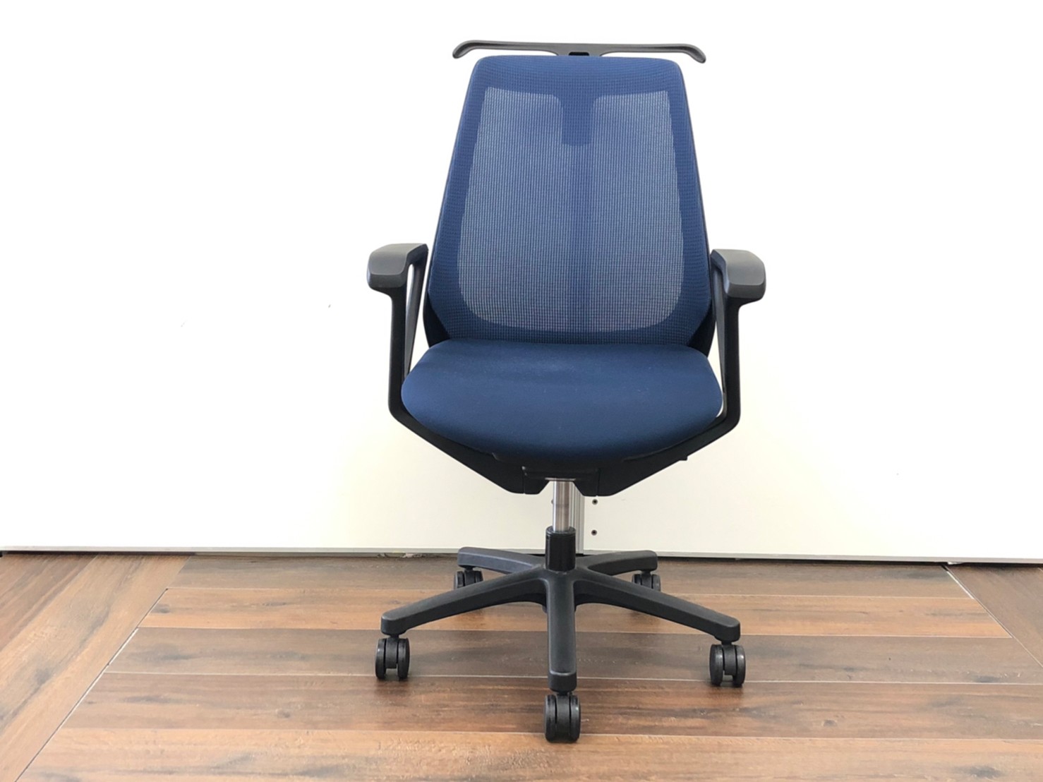 【状態良好品!肘・コートハンガー付き!】イトーキ ノナ メッシュチェア ネイビーブルー 【2脚限定セール品!】- 足立・葛飾店