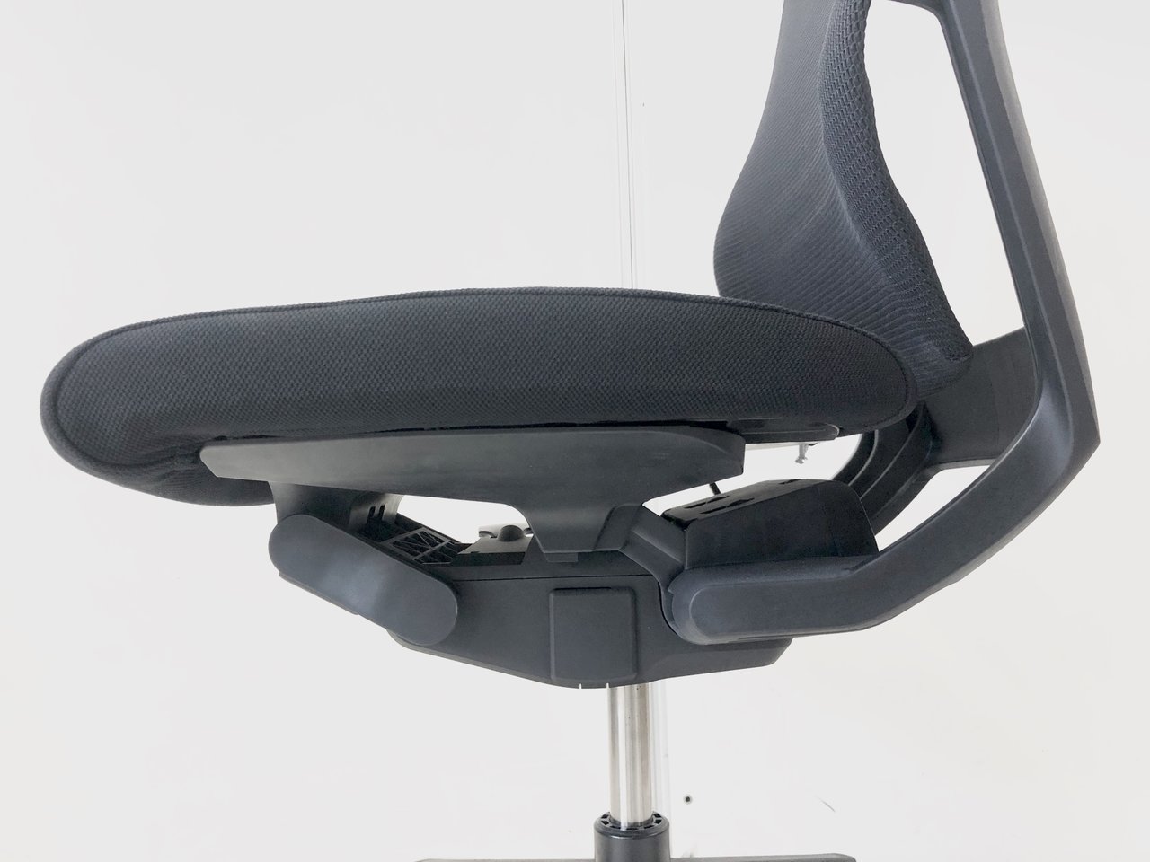 - 座面下のレバー操作により、座面を50mmのストローク(16.7mmピッチ)で好みの位置に調節できます。体格や作業姿勢に合わせたポジション設定が行えます。