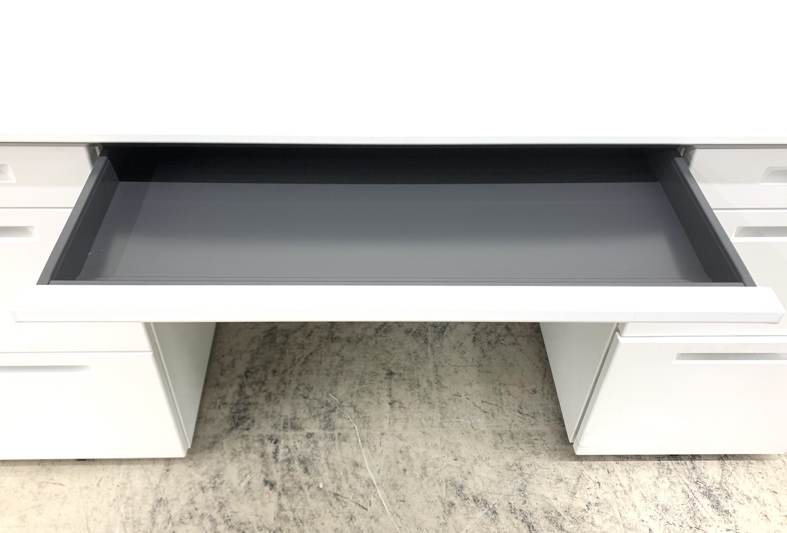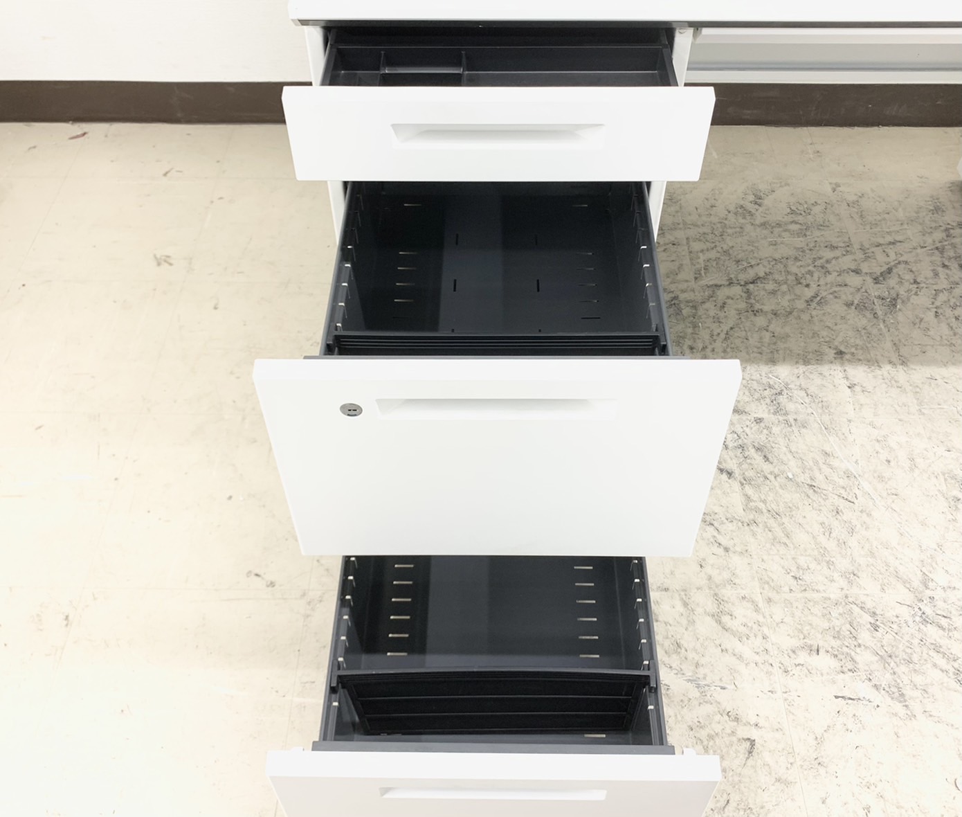 【T11】【商品入替のため、残り4台限り】コクヨ製 アイエス(IS) ホワイト 両袖 デスク W1400xD700xH720サイズ シリンダー 収納スペース充実! 机上をスッキリ整理! 幅広いワークスペースで上長席にもオススメ! W1400両袖机!!