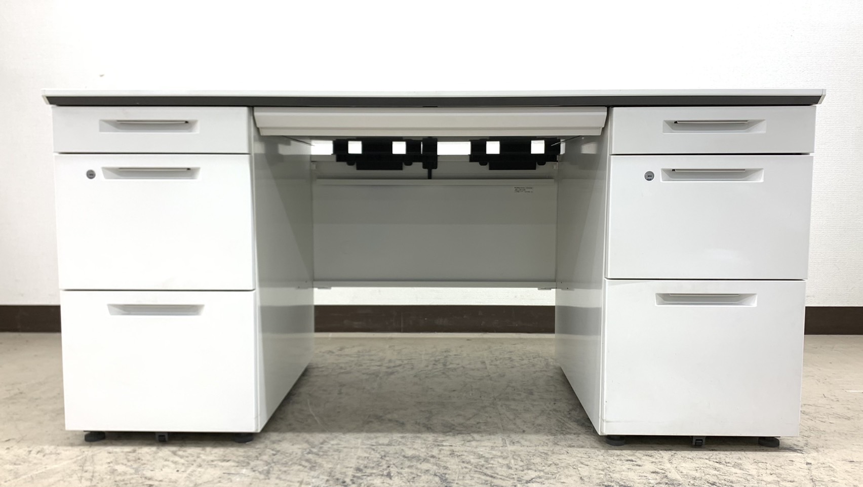 【在庫入替セール】コクヨ iSシリーズ 両袖机 W1400の定番サイズ ホワイト 鍵付き シリンダー錠 両側の引き出しで大容量の収納が可能 【愛知・名古屋・豊田・静岡・浜松】