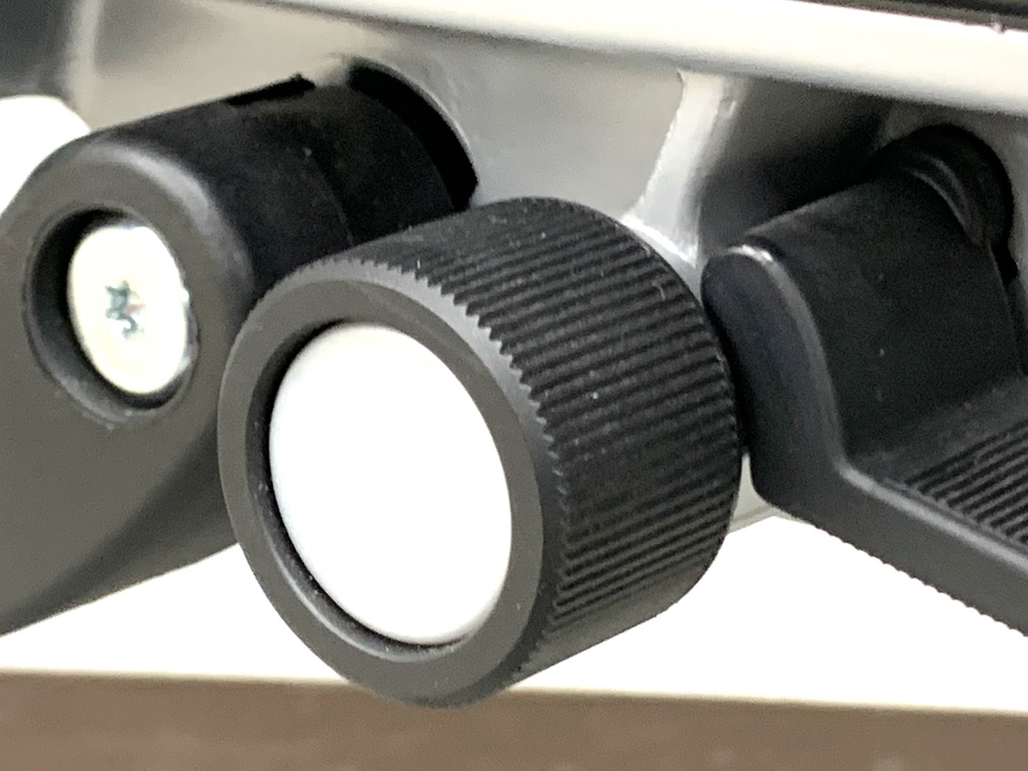 - アームの高さはキャップ下にあるボタンを持ち上げながら上下に調節、アームの位置はアームキャップをつかみ、上下、左右、角度にスライドさせて調節できます。身体の肘はなるべく身体に近づけ、手首とまっすぐになるように調節してください。