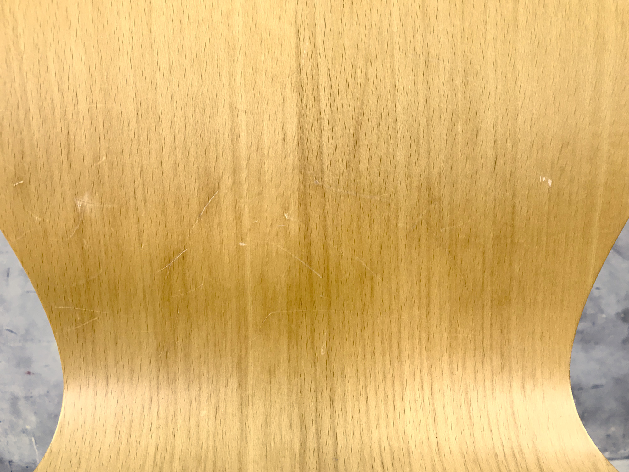 - かなり強い濃い黄ばみ・変色が商品全体にある。(例、座面・背もたれ、脚部等にある。)