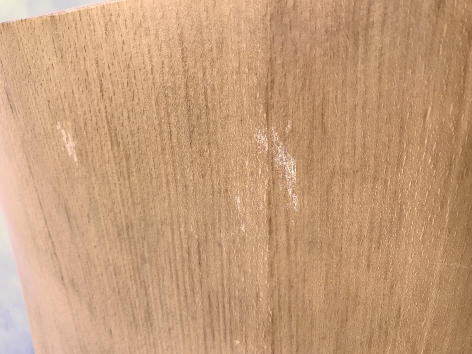 - かなり強い濃い黄ばみ・変色が商品全体にある。(例、座面・背もたれ、脚部等にある。)