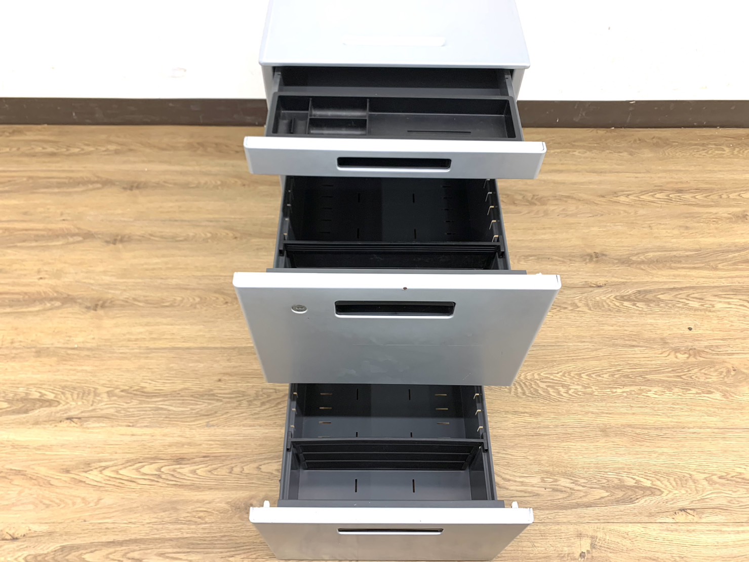 【4台入荷】【高さ注意650mm】【状態要考慮】輝く!シルバー近未来カラー3段引出キャスター付き⇒GTシリーズ◆コクヨ製【RP】- 埼玉本店