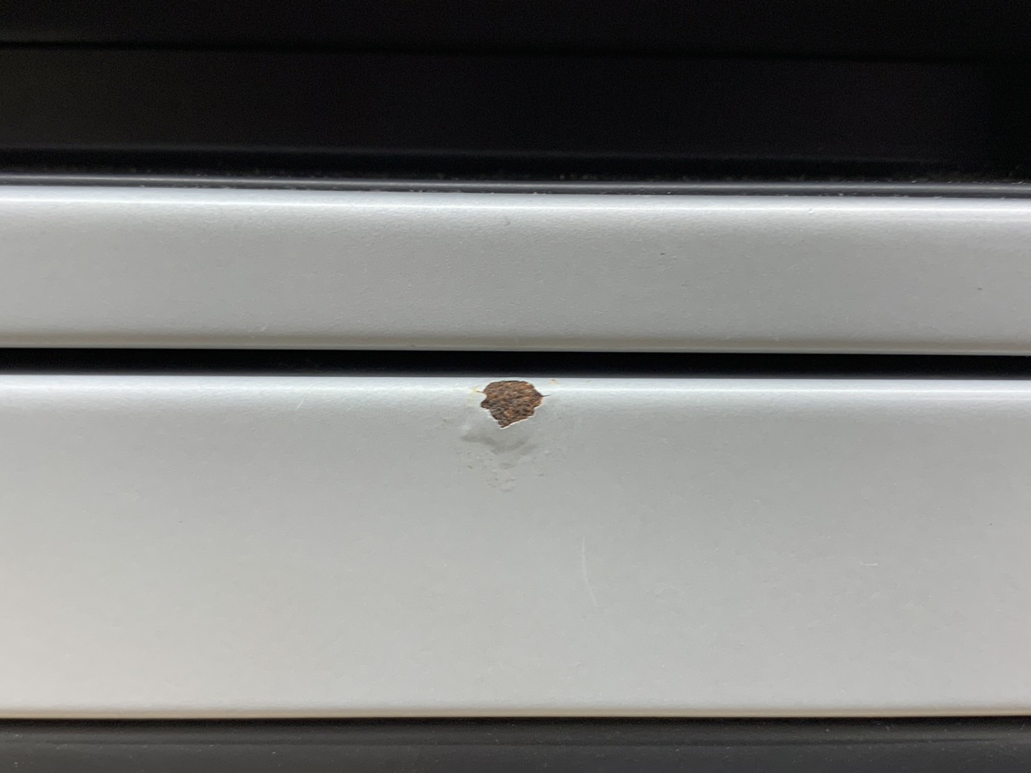 - あり黄ばみ・変色が広い範囲にうっすらある、または濃い黄ばみ・変色が一部ある。(例、天板、正面、背後、サイド部分にある。)