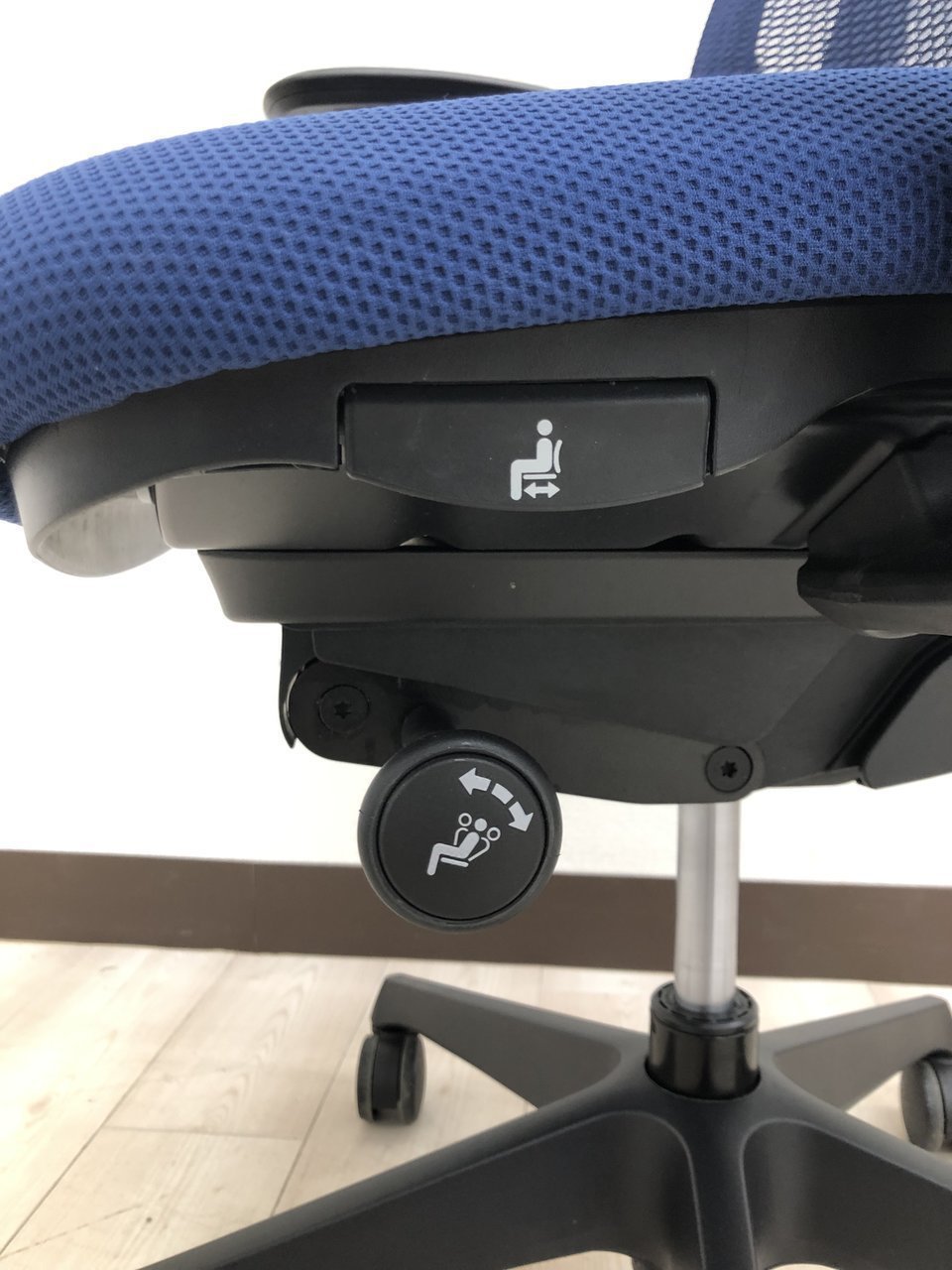 - 座面右下のダイヤル操作で、リクライニングの強弱調整が行えます。これまでのダイヤル式よりも、少ない回転数で、最弱?最強の調整が可能です。