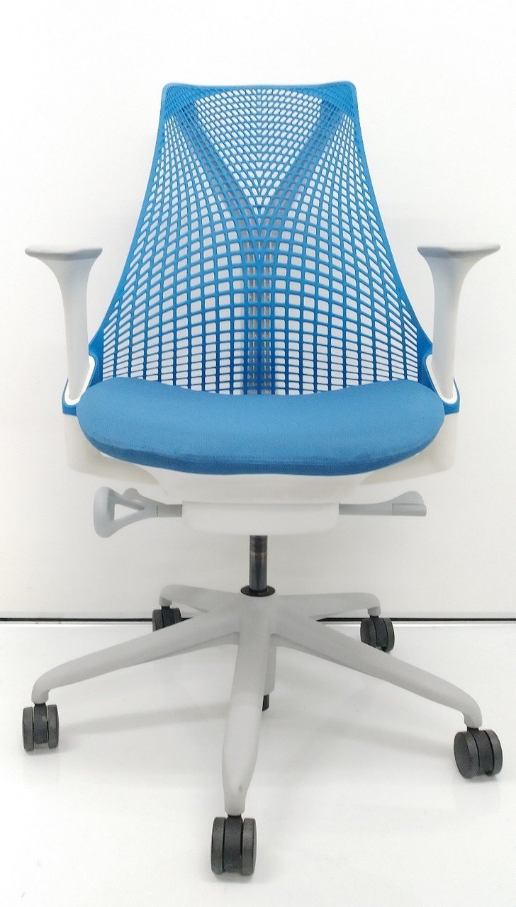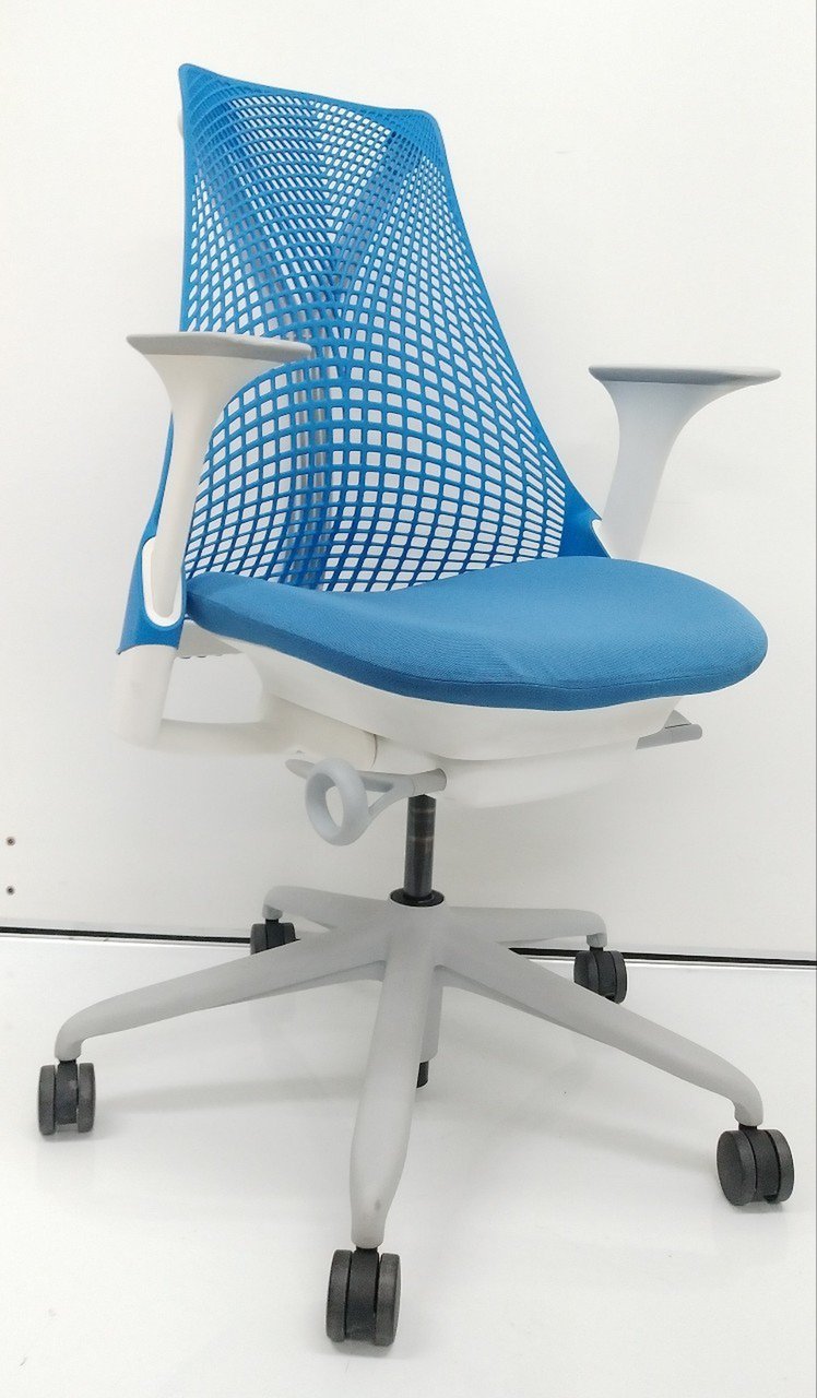 【人気チェア!】【セイルチェア】ホワイトフレーム サスペンションミドルバック|ブルー【hi_class】【クリーニング済!】- 日本橋店