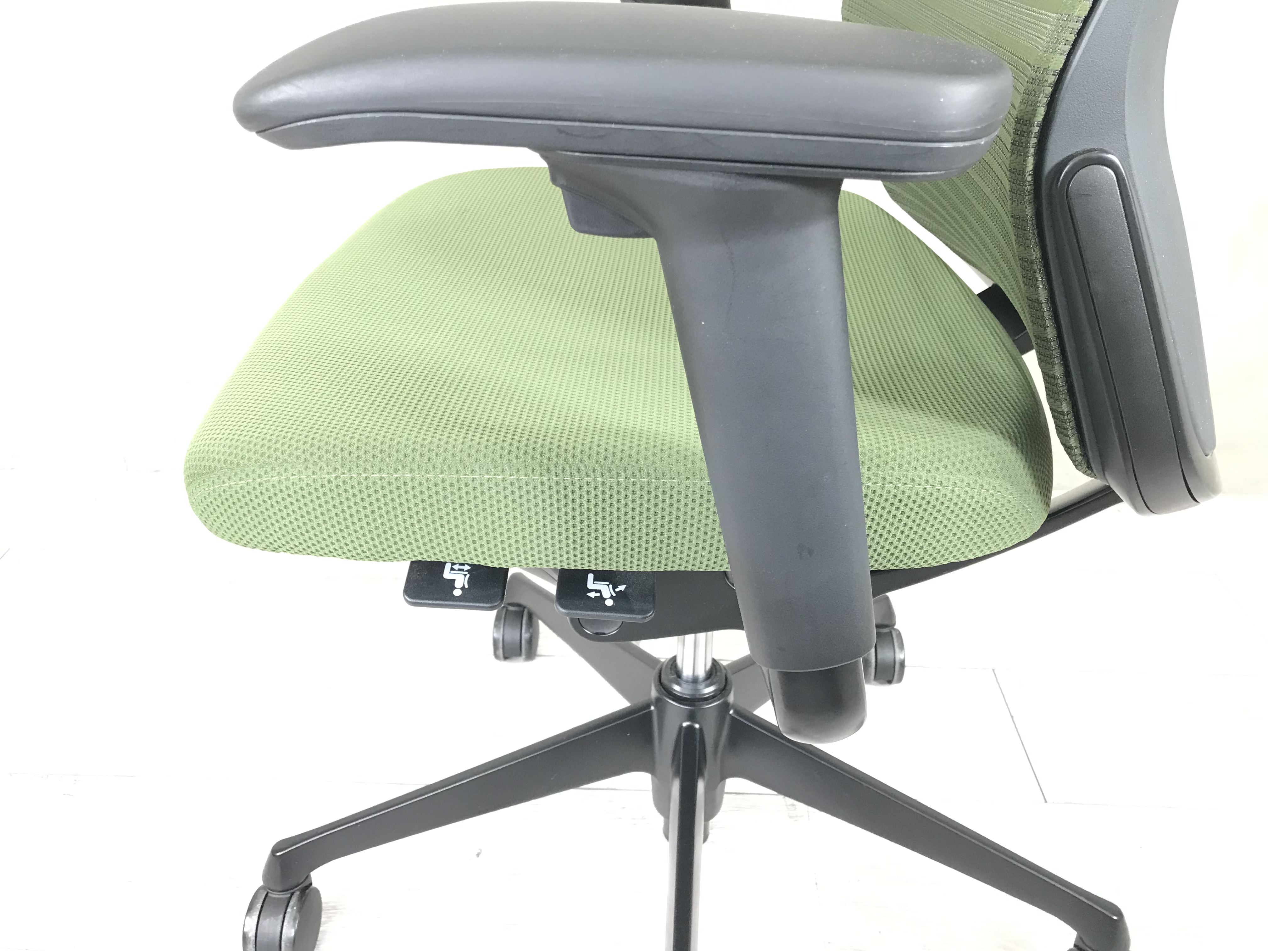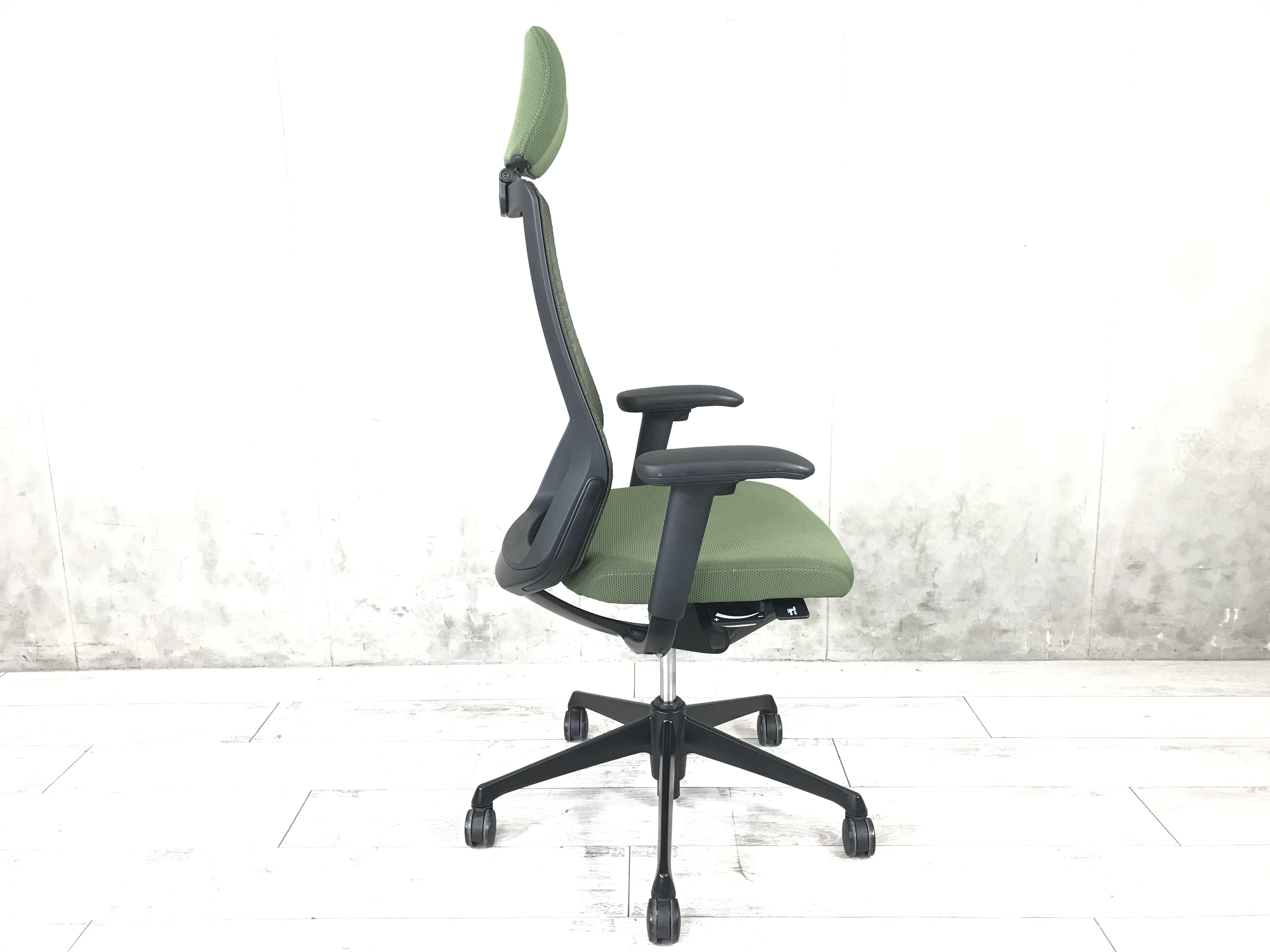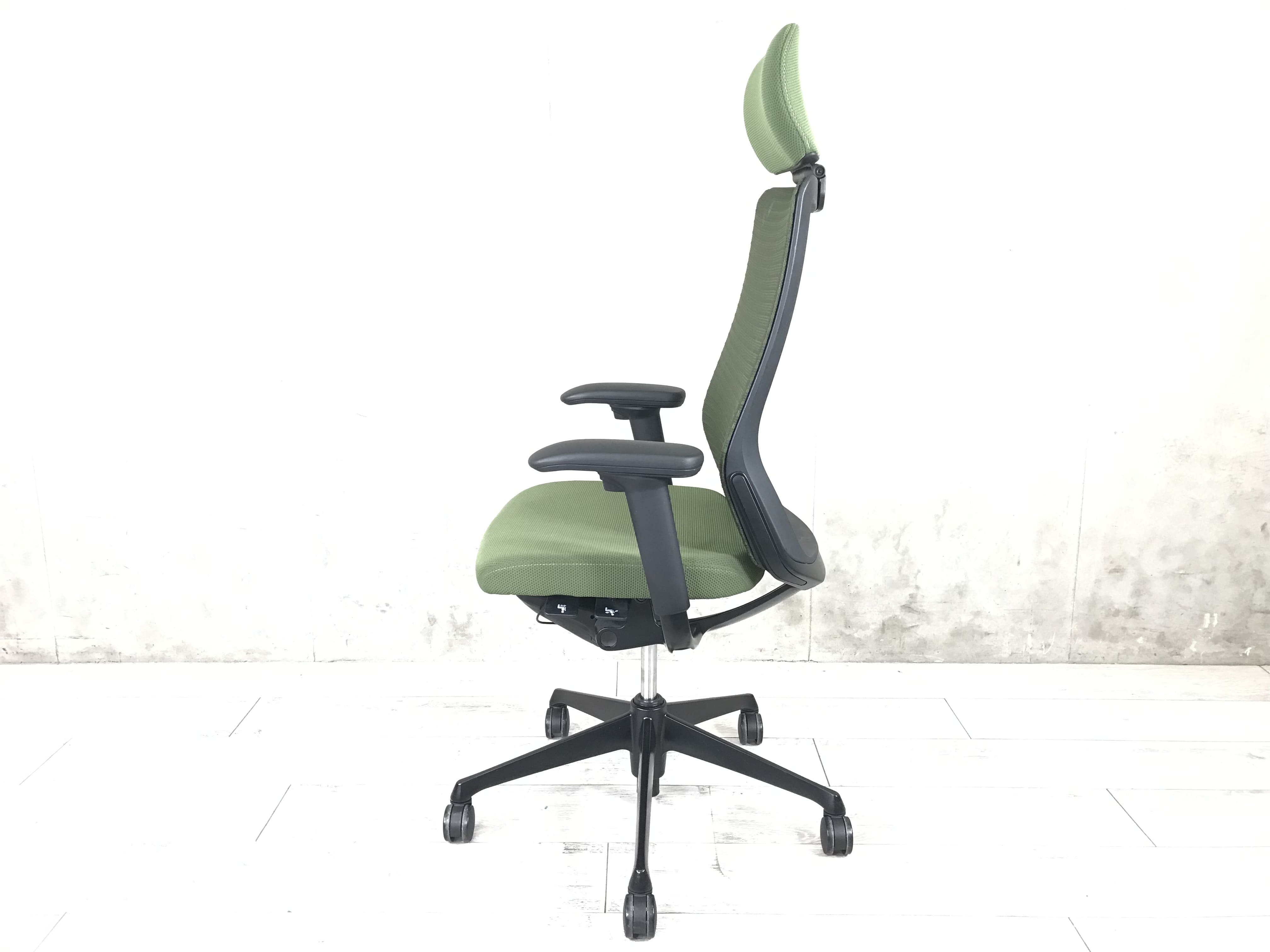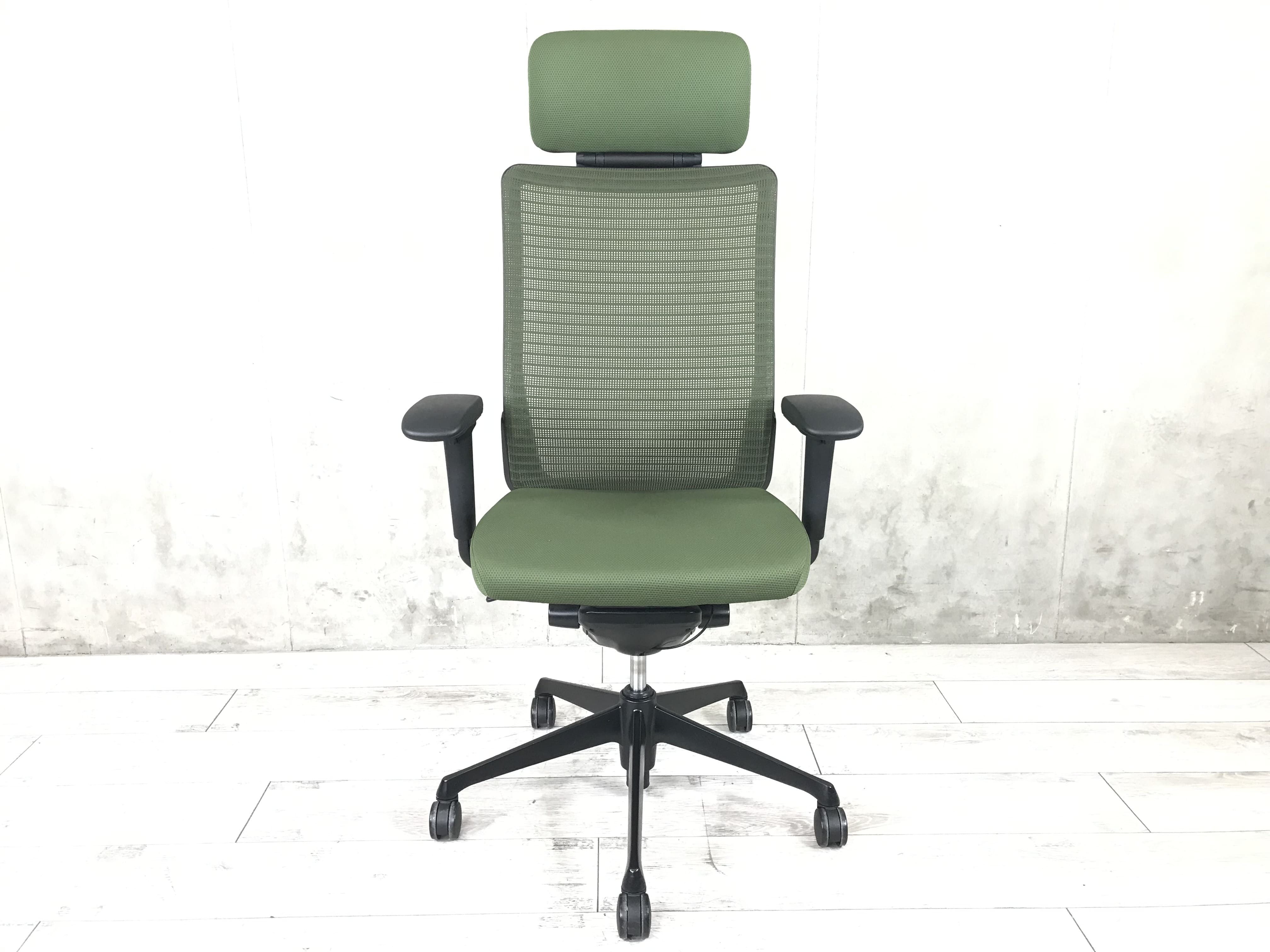 【ヘッドレスト付き】オカムラ/コーラル/グリーン/稼働肘/役員用 シンプル操作で初めての高級チェアにおすすめ!- つくば店