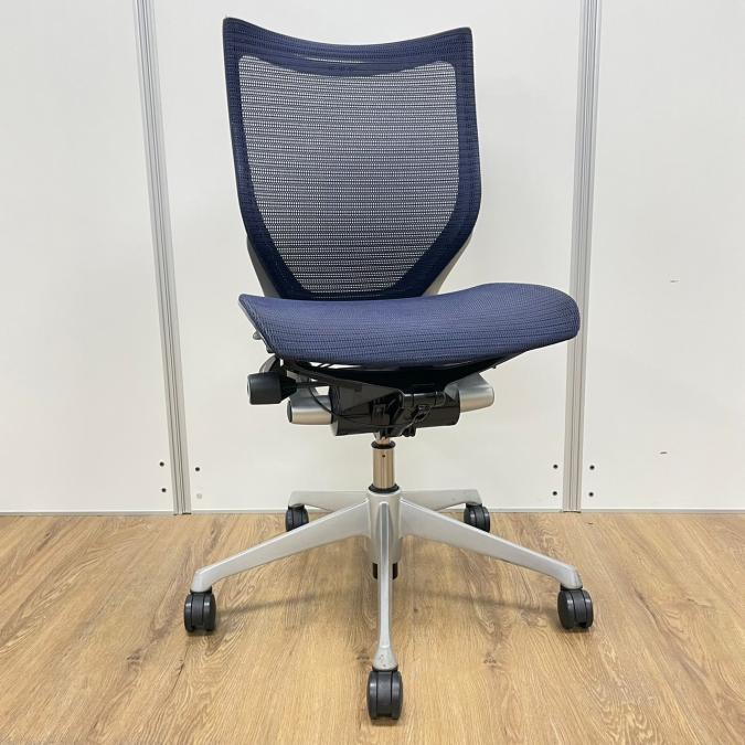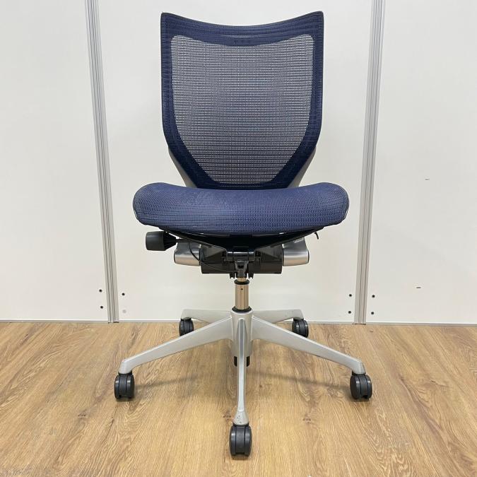 オカムラ製 定番バロンシリーズ ダークブルー 肘無しローバックチェア!!- 京都東寺店