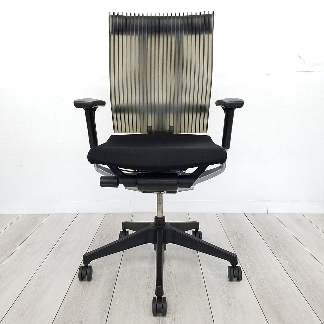 今回は可動肘掛けと半透明エラストマー背もたれ仕様、ブラック樹脂脚仕様となります!!