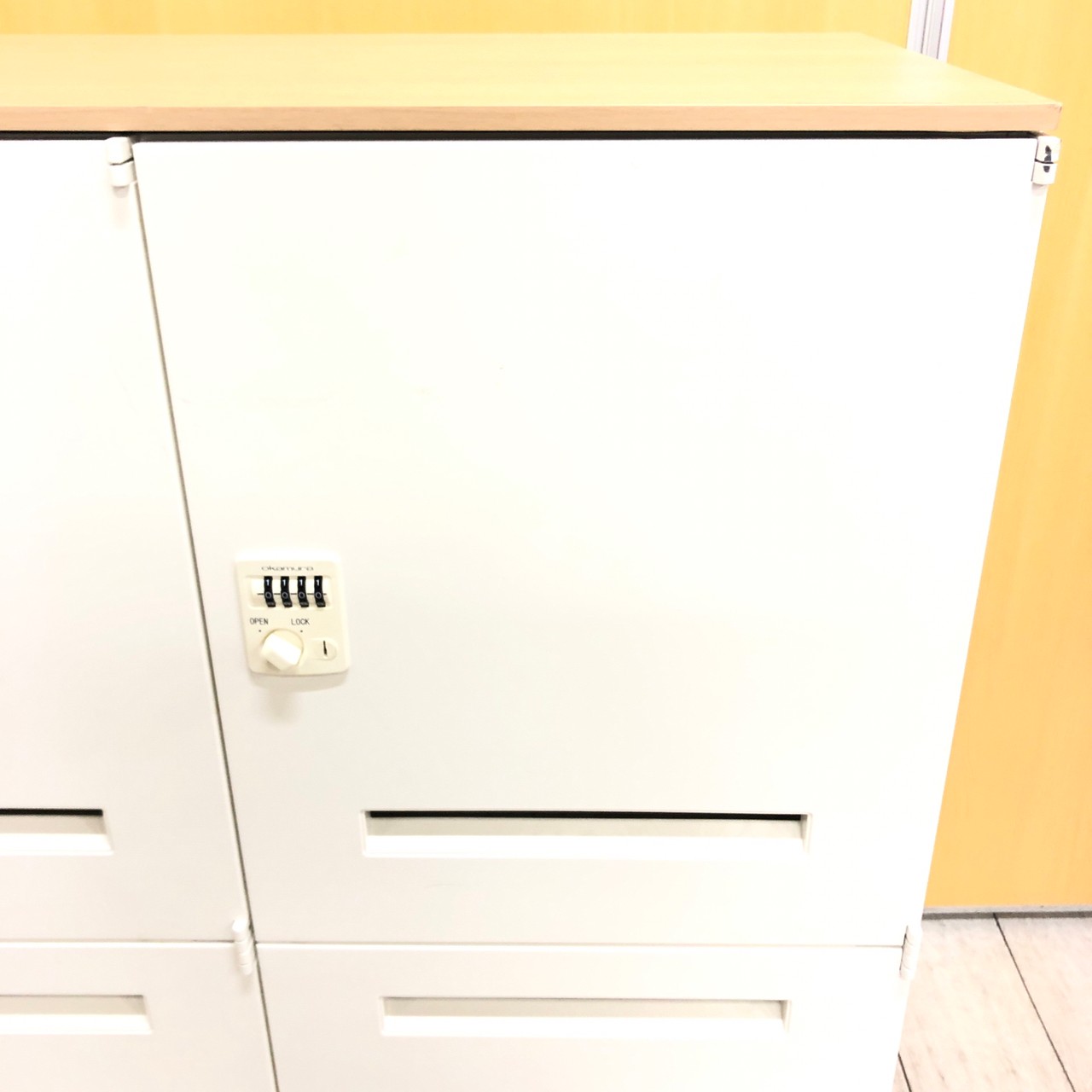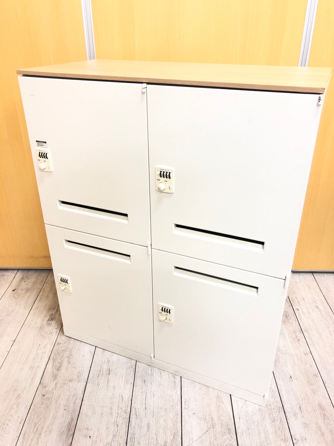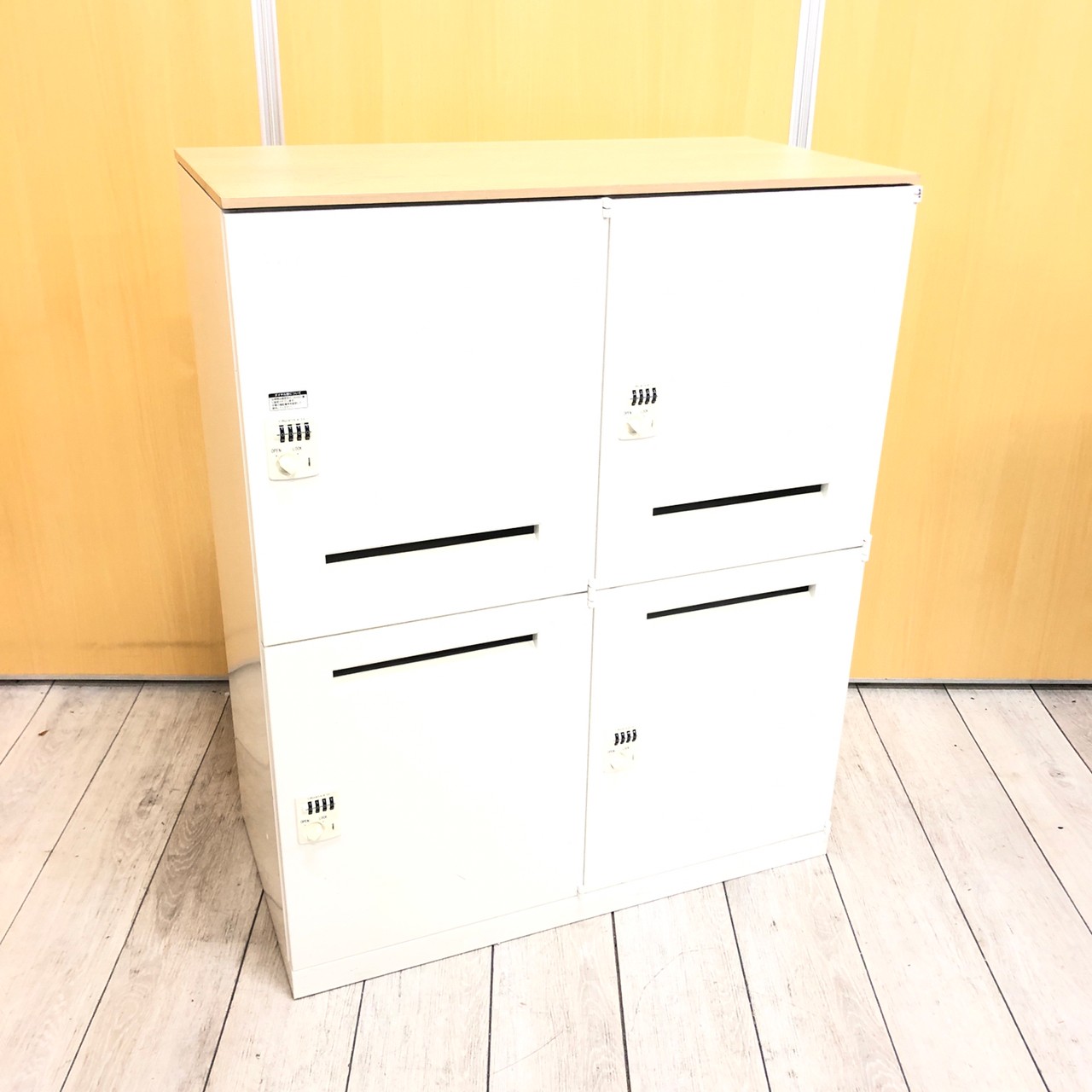 【商品入替のため、残り4台限り】オカムラ製 レクトライン ホワイト 4人用 投函口有り ダイヤル錠 ナチュラル木目調天板 フリーアドレスオフィスの必需品! ダイヤル錠式で鍵の持ち運び要らず! 4人用パーソナルロッカー!!※非常解除キーはついていません