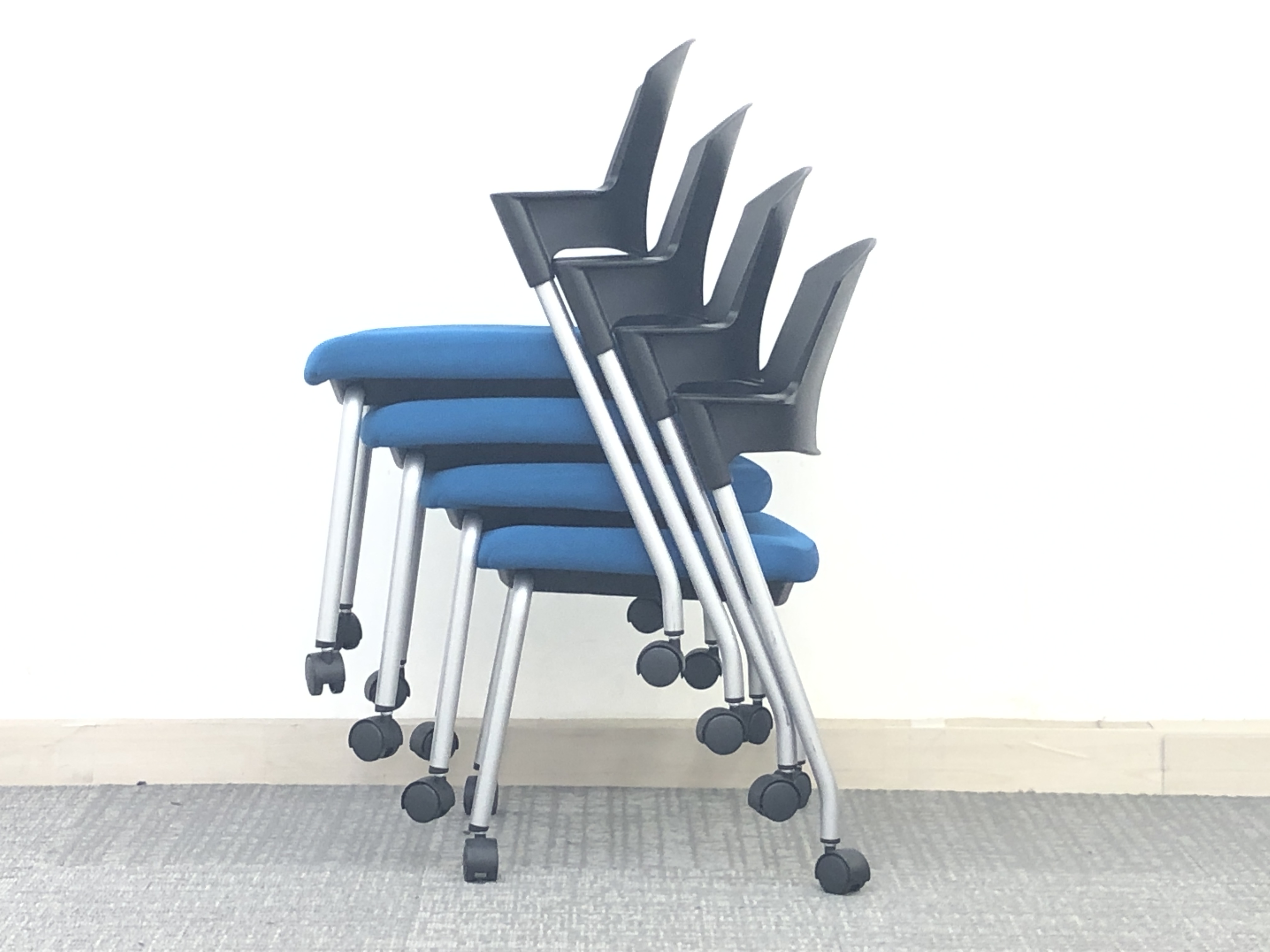 【4脚セット!】【驚異の16脚入荷!!】省スペース片づけカンタンチェア!ブルー&ブラック◆コクヨ製- 春日部・越谷店